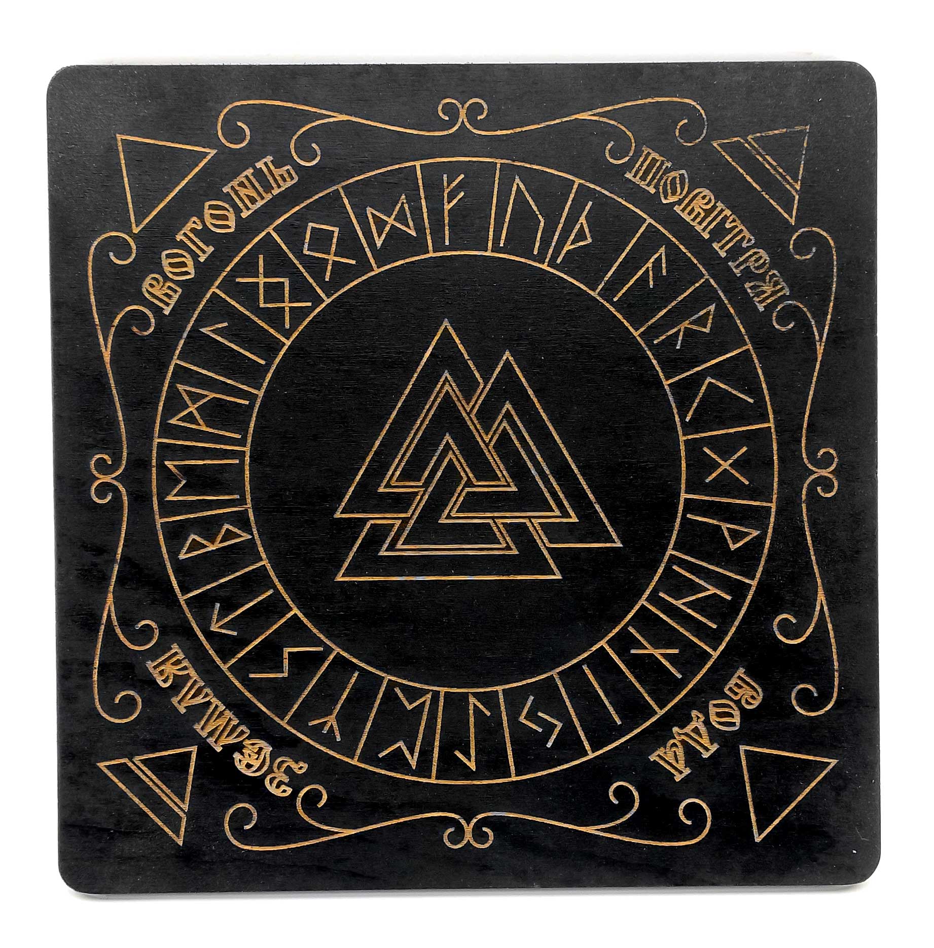 Рунический алтарь из дерева на украинском языке, темный (26х26х0,8 см), покрыт эмалью.