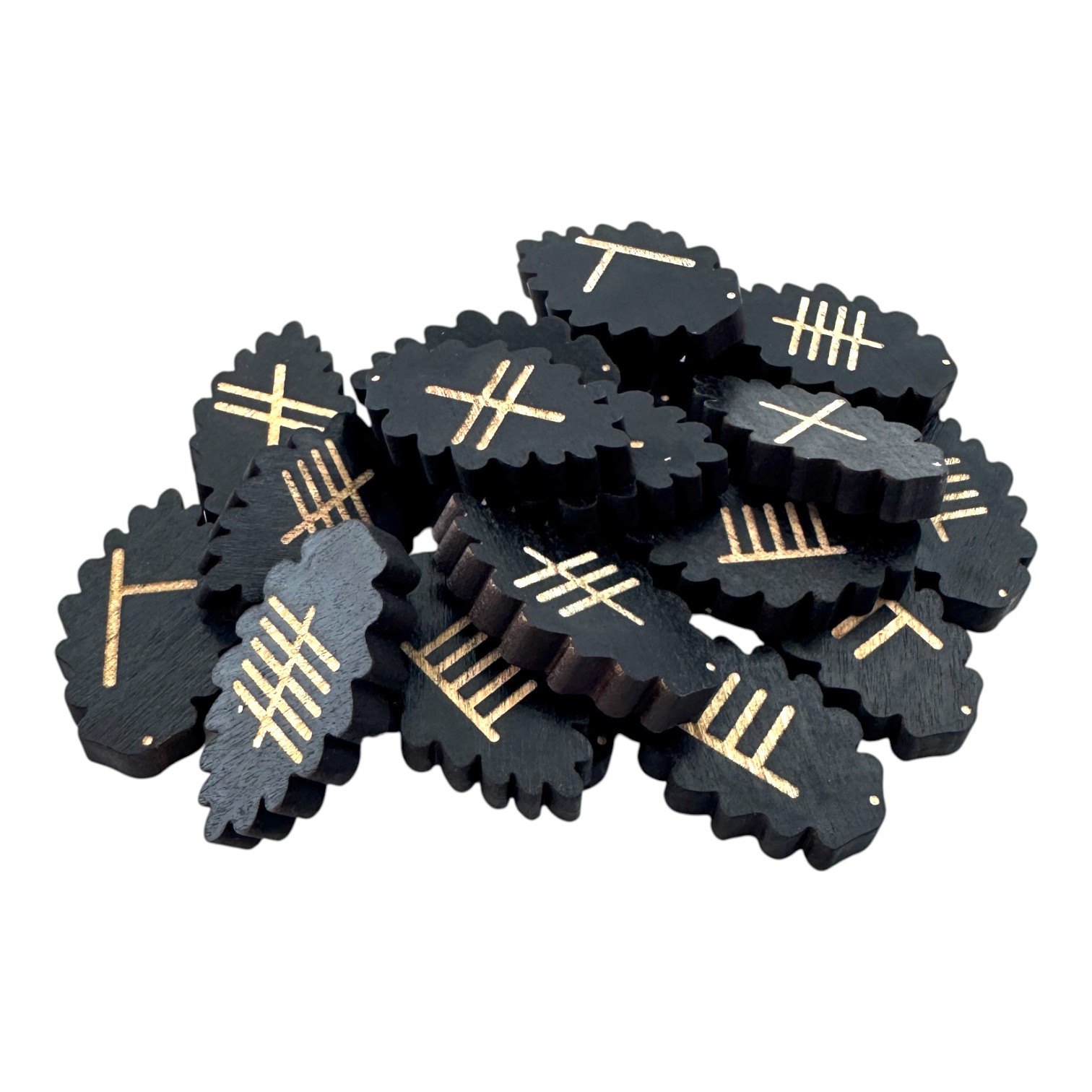 Руны Кельтские руны ОгамЛистья(руны Друидов) темные, 20 рун (4,2х2,5х0,7 см) с мешочком , массив