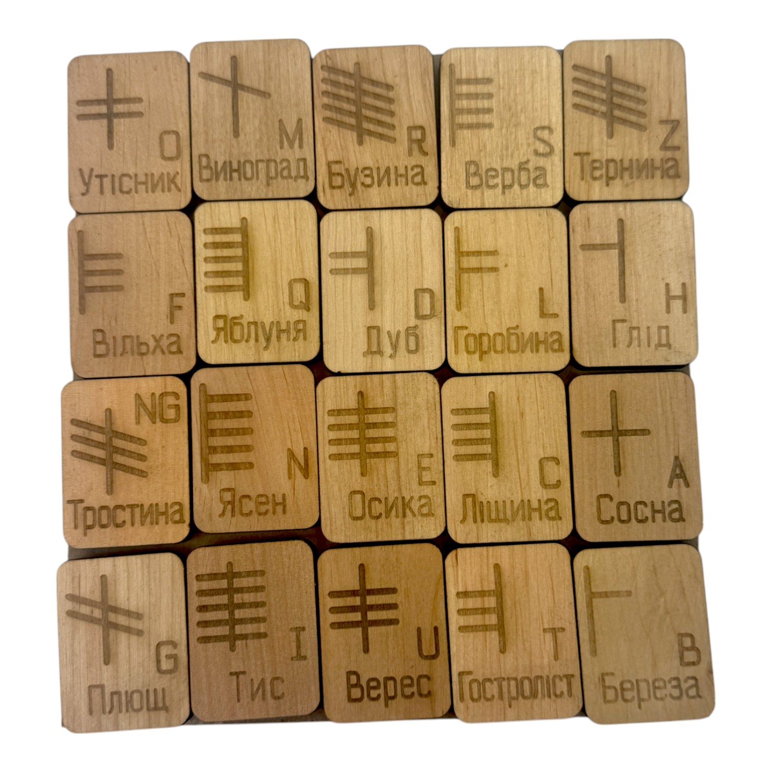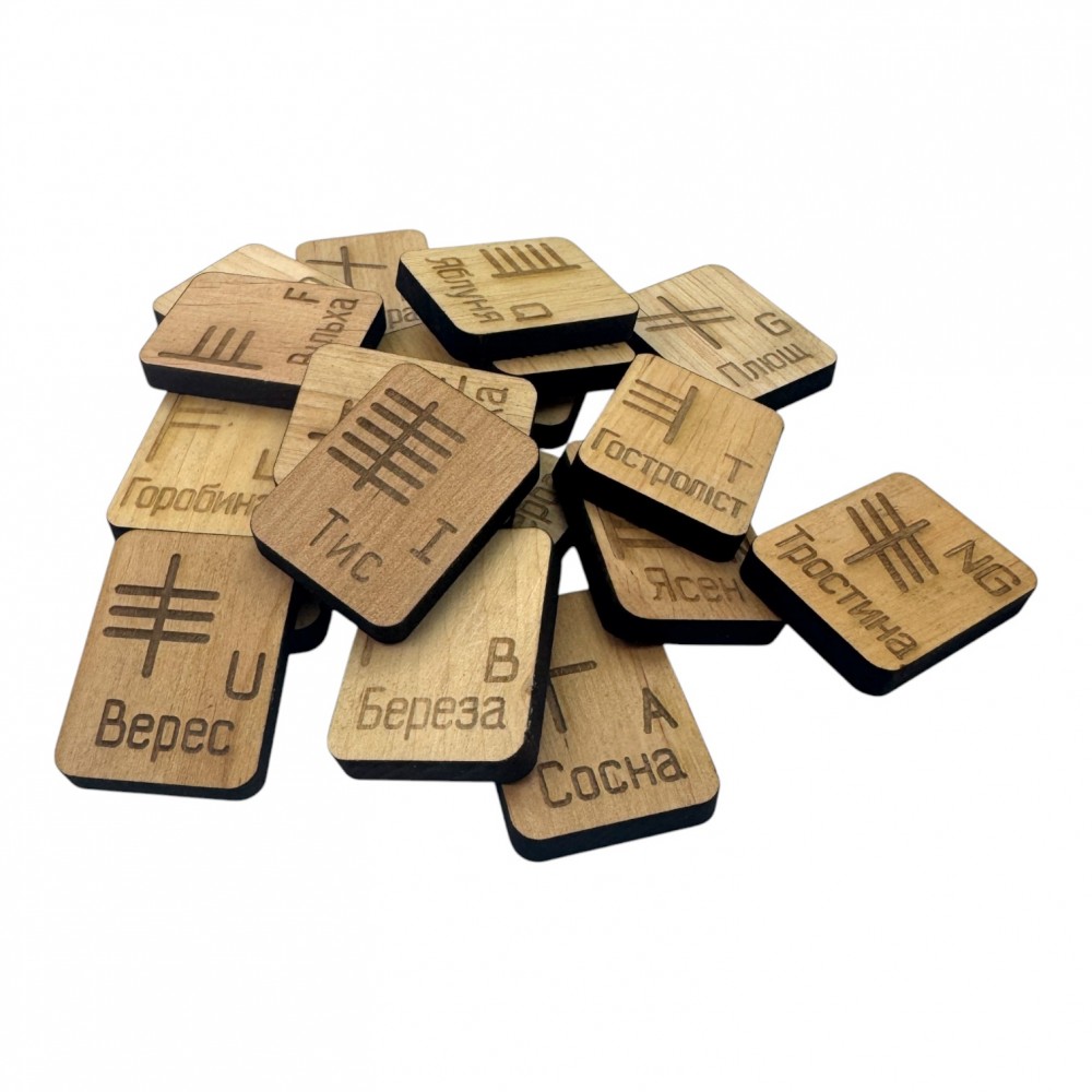 Руны Кельтские руны Огам(руны Друидов) светлые, 20 рун (4,2х3,2х0,7 см) с мешочком , массив дерева