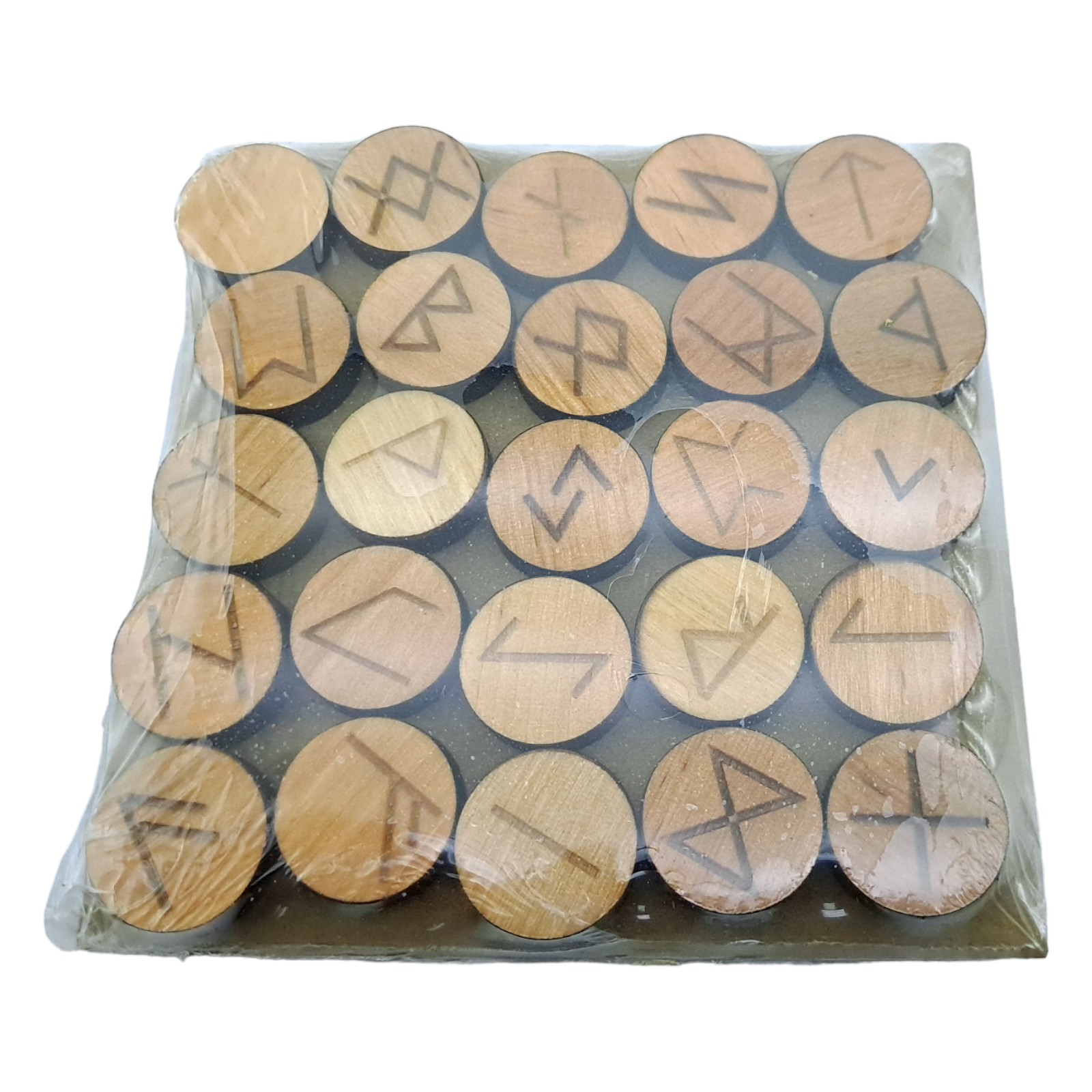 Руны Скандинавские круглые, светлые, 25 рун (d-2,3 см ,h-0,7 см) ,массив дерева