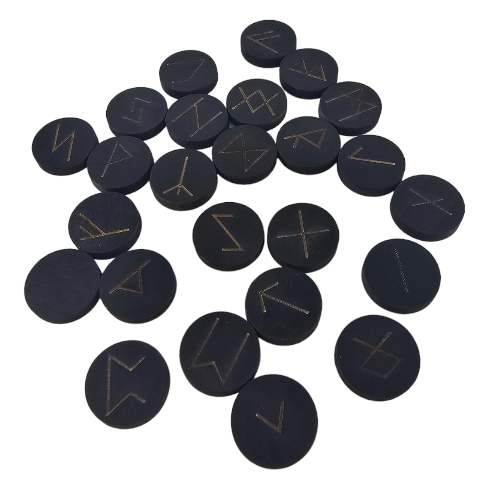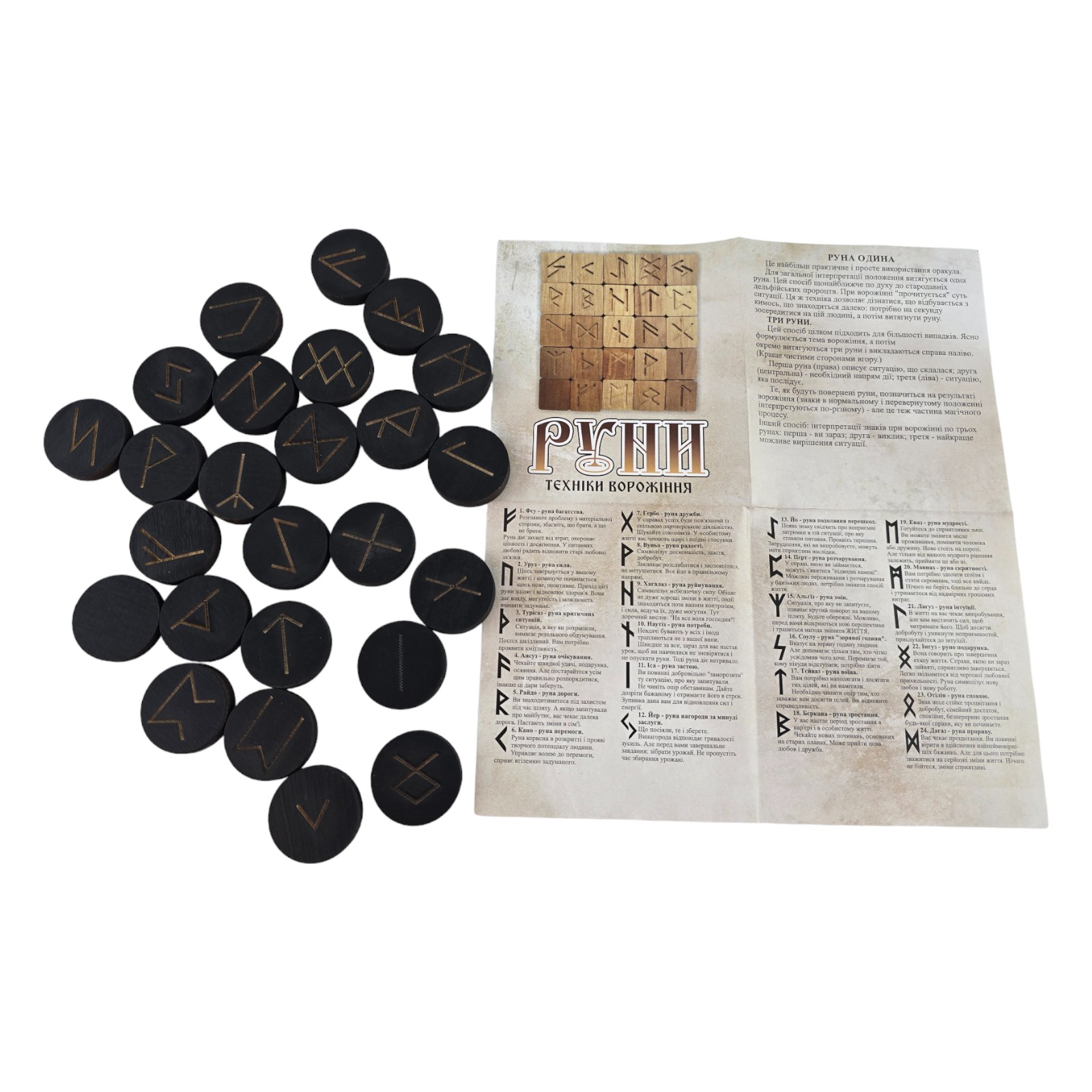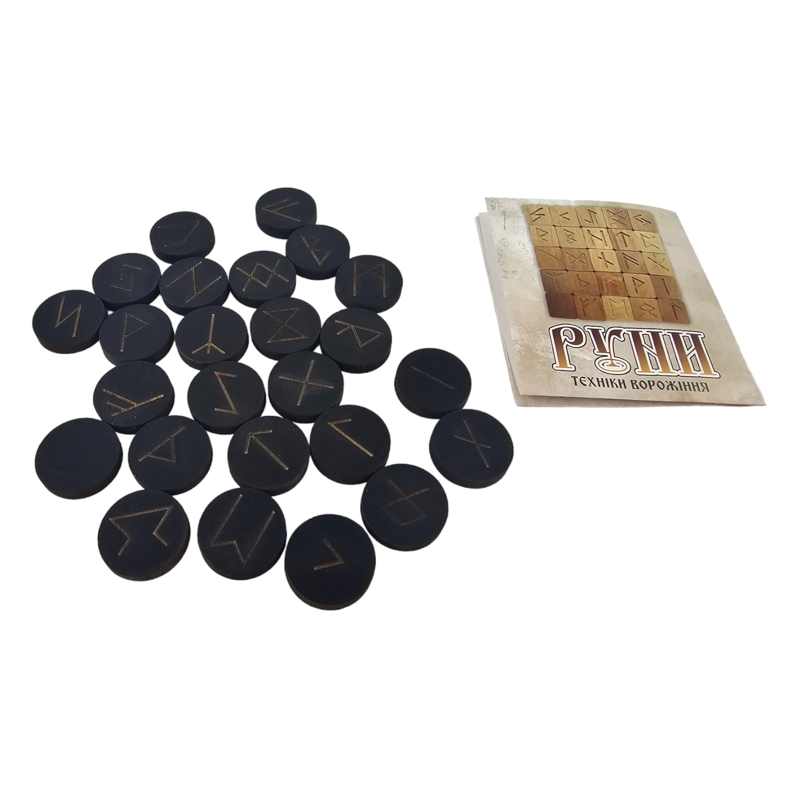 Руны Скандинавские круглые, темные, 25 рун (d-3,1 см ,h-0,7 см) , массив дерева