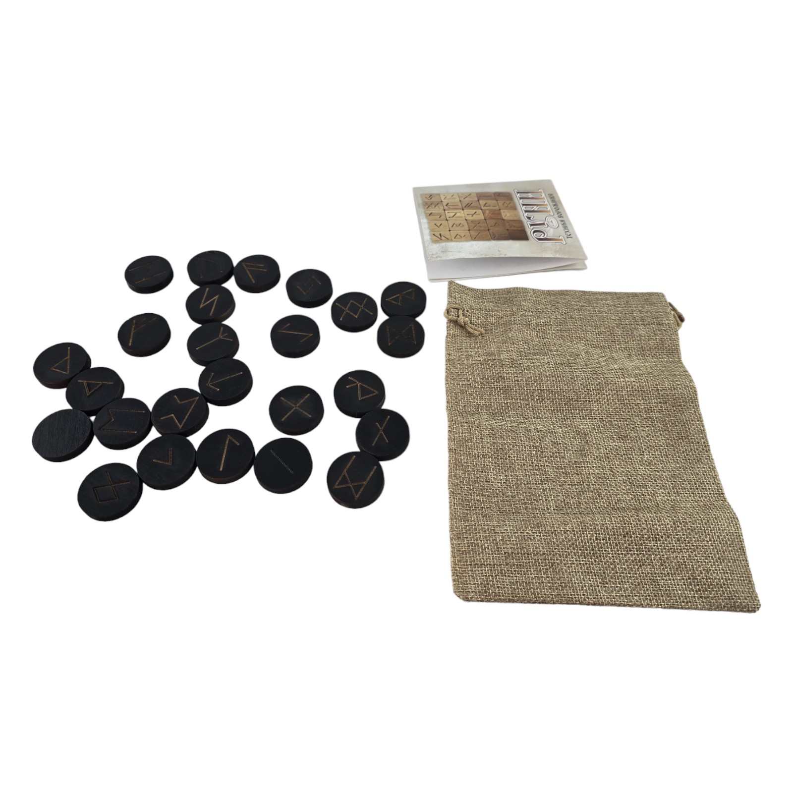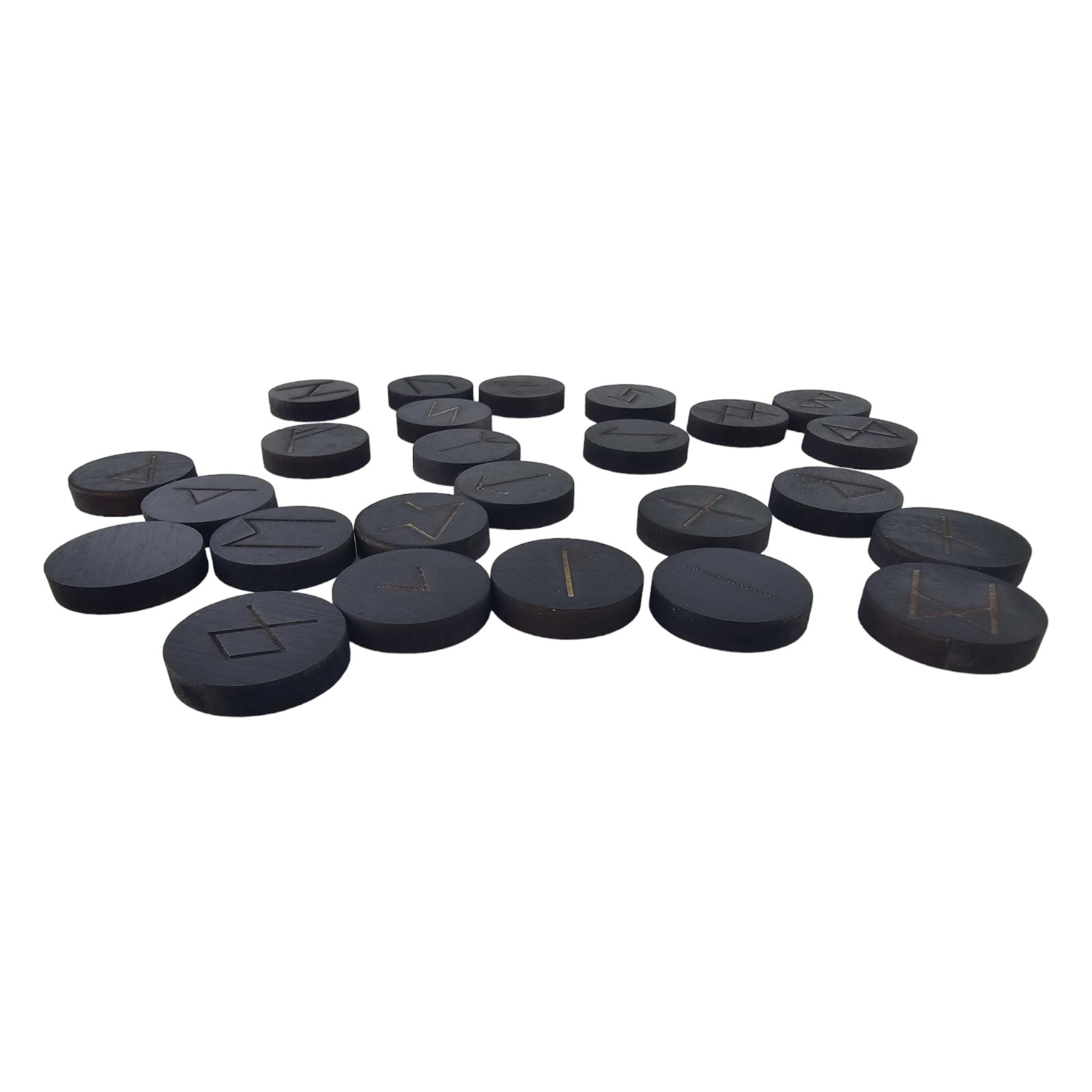 Руны Скандинавские круглые, темные, 25 рун (d-3,1 см ,h-0,7 см) с мешочком ,массив дерева