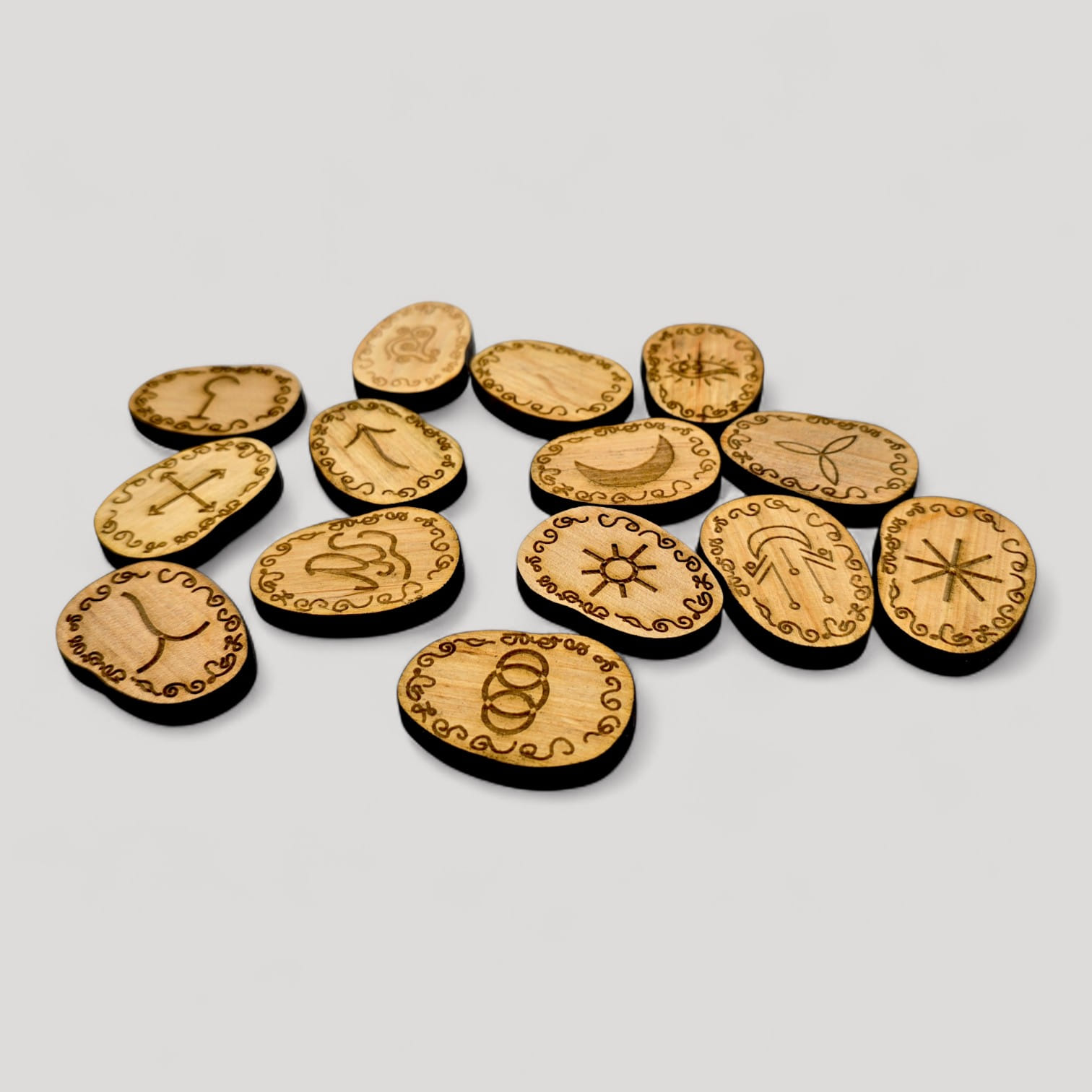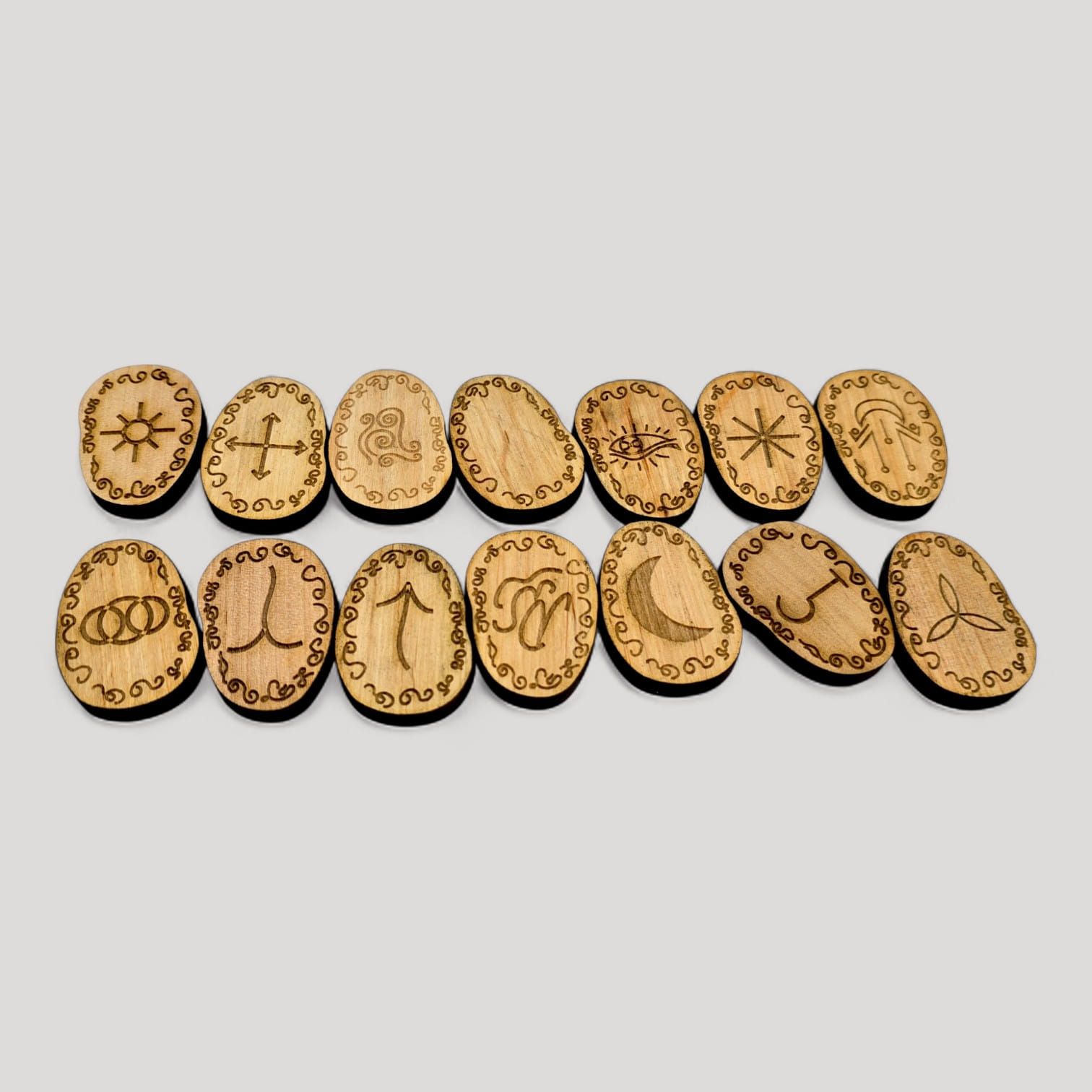 Руны Ведьмины (Викканские) светлые, 14 рун (4,2х3,1х0,7 см), массив дерева.