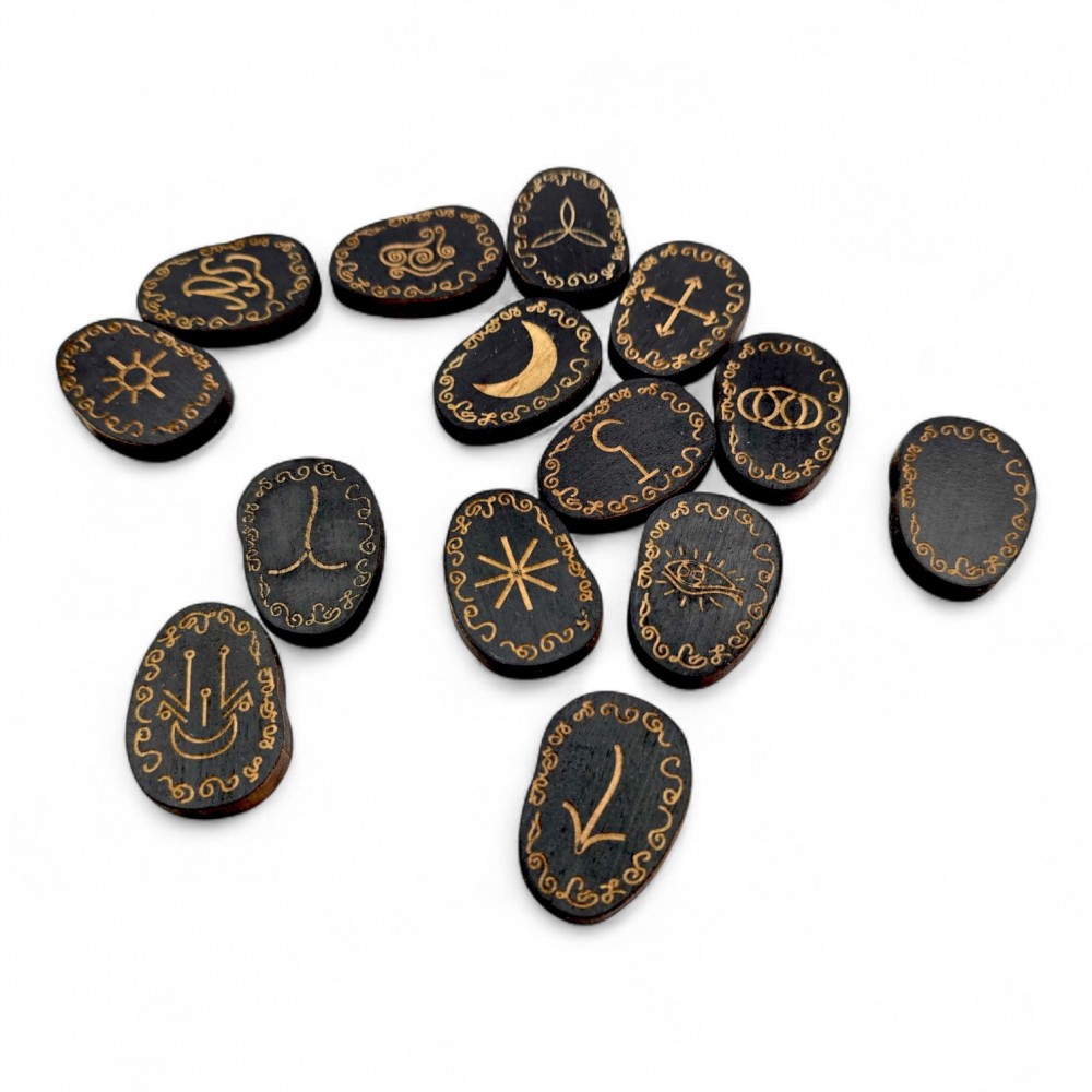 Руны Ведьмины (Викканские) темные, 14 рун (4,2х3,1х0,7 см), массив дерева.