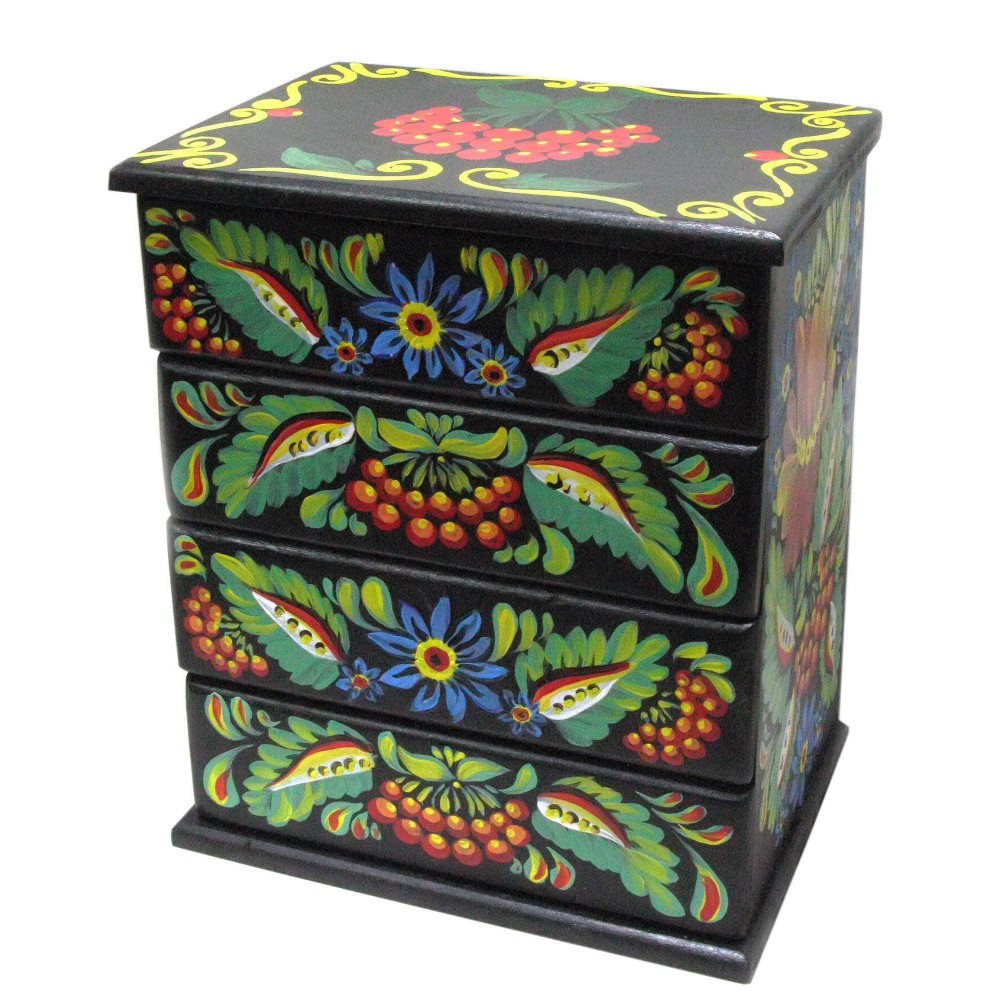 Шкатулка сделана из массива дерева, расписана вручную.Шкатулка – это оригинальный подарок, который оценит любая представительница прекрасного пола! Такой подарок является не только местом для хранения украшений, но и сам станет украшением комнаты.