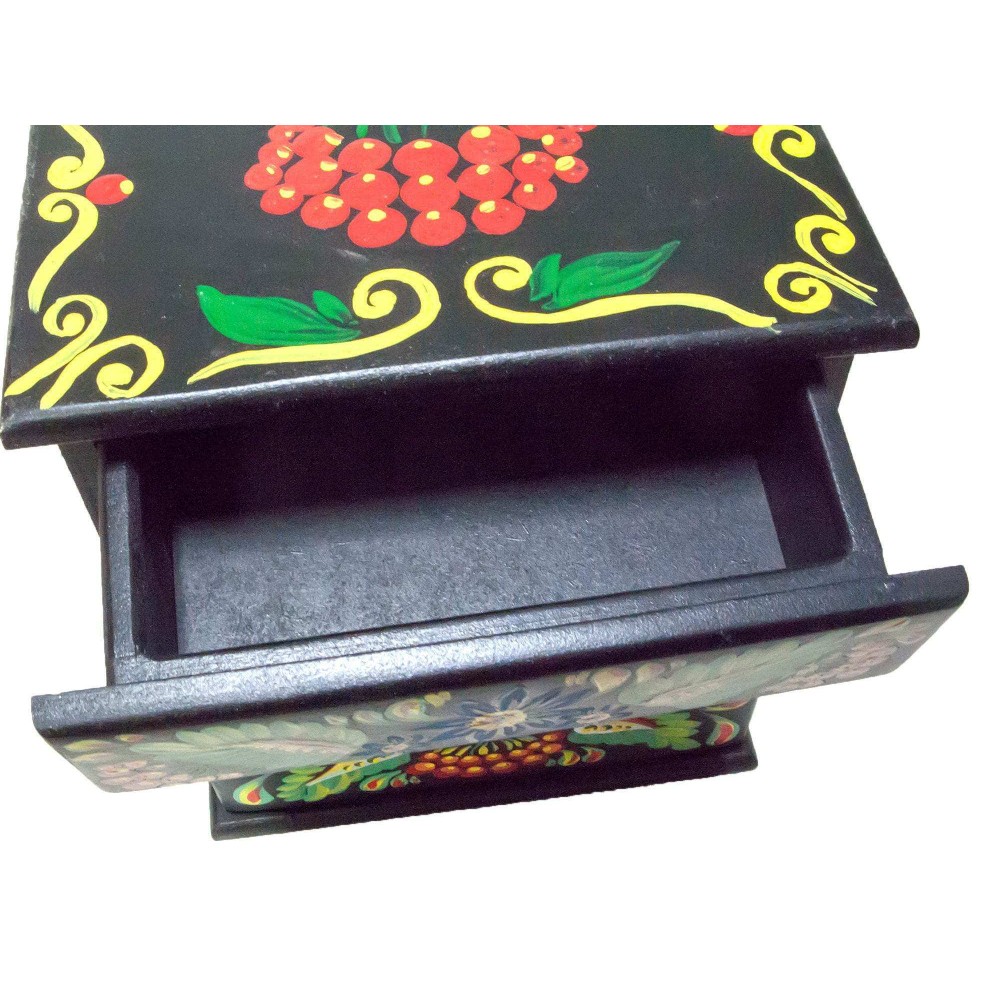 Шкатулка комод Цветы с калиной ,черная, расписано вручную массив дерева (22,5х15х26 см)