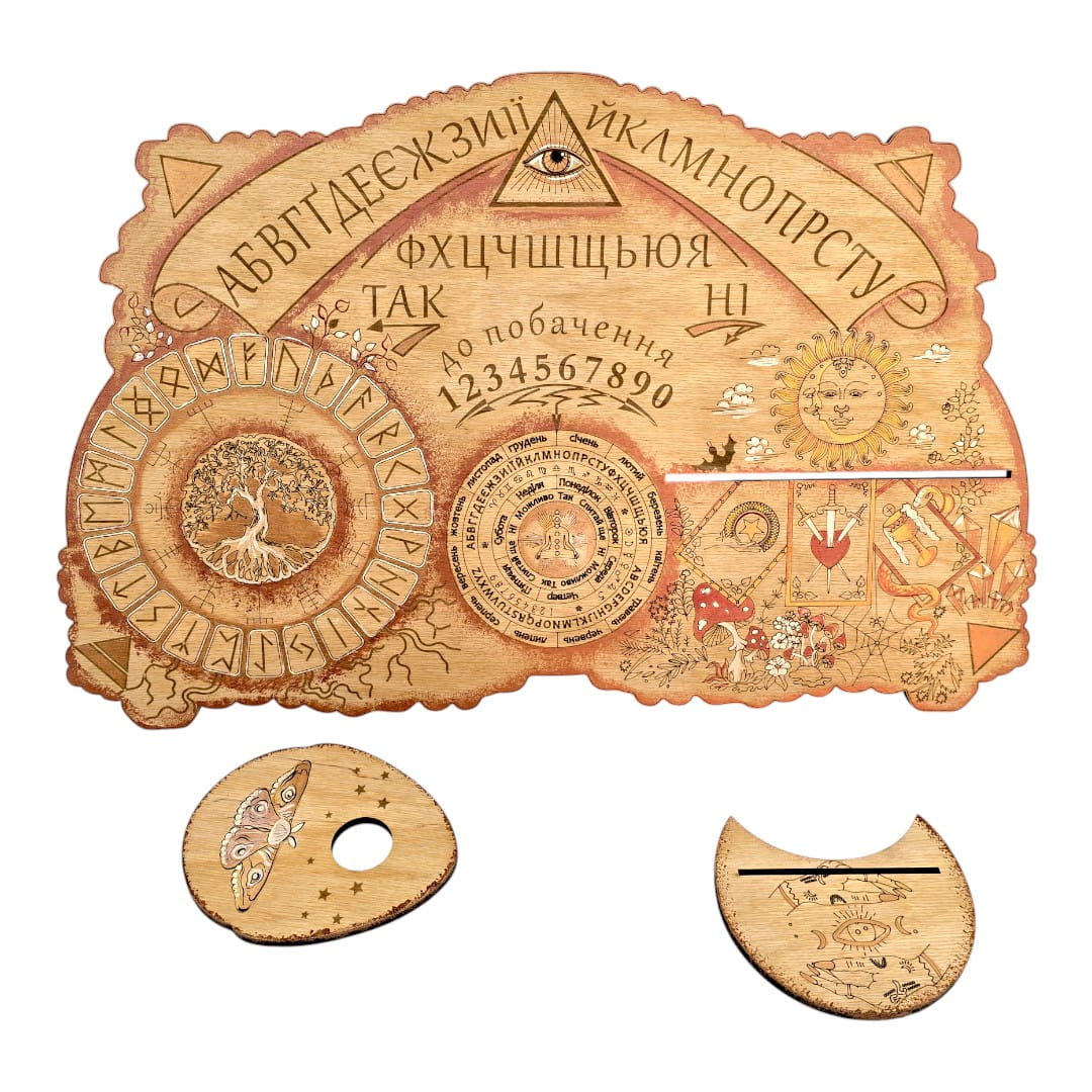 Эта деревянная доска объединяет в себе сразу несколько инструментов для мистической практики: