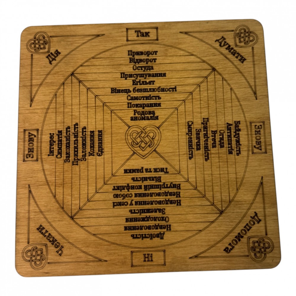 Таблица для работы с маятником Любовной магии, на украинском языке светлая (18х18х0,4 см)