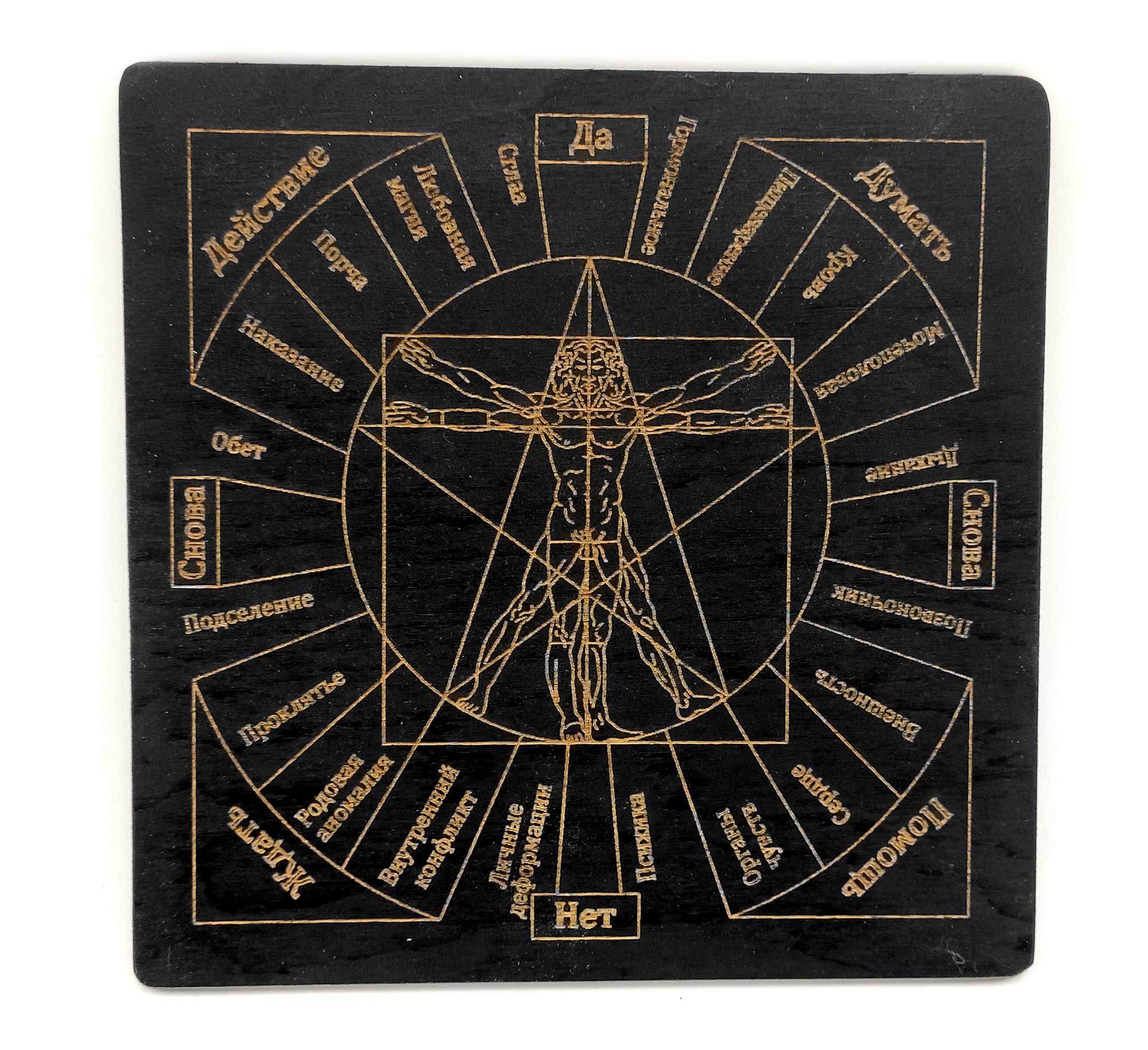 Таблица для работы с маятником Магические воздействия темная (18х18х0,4 см)