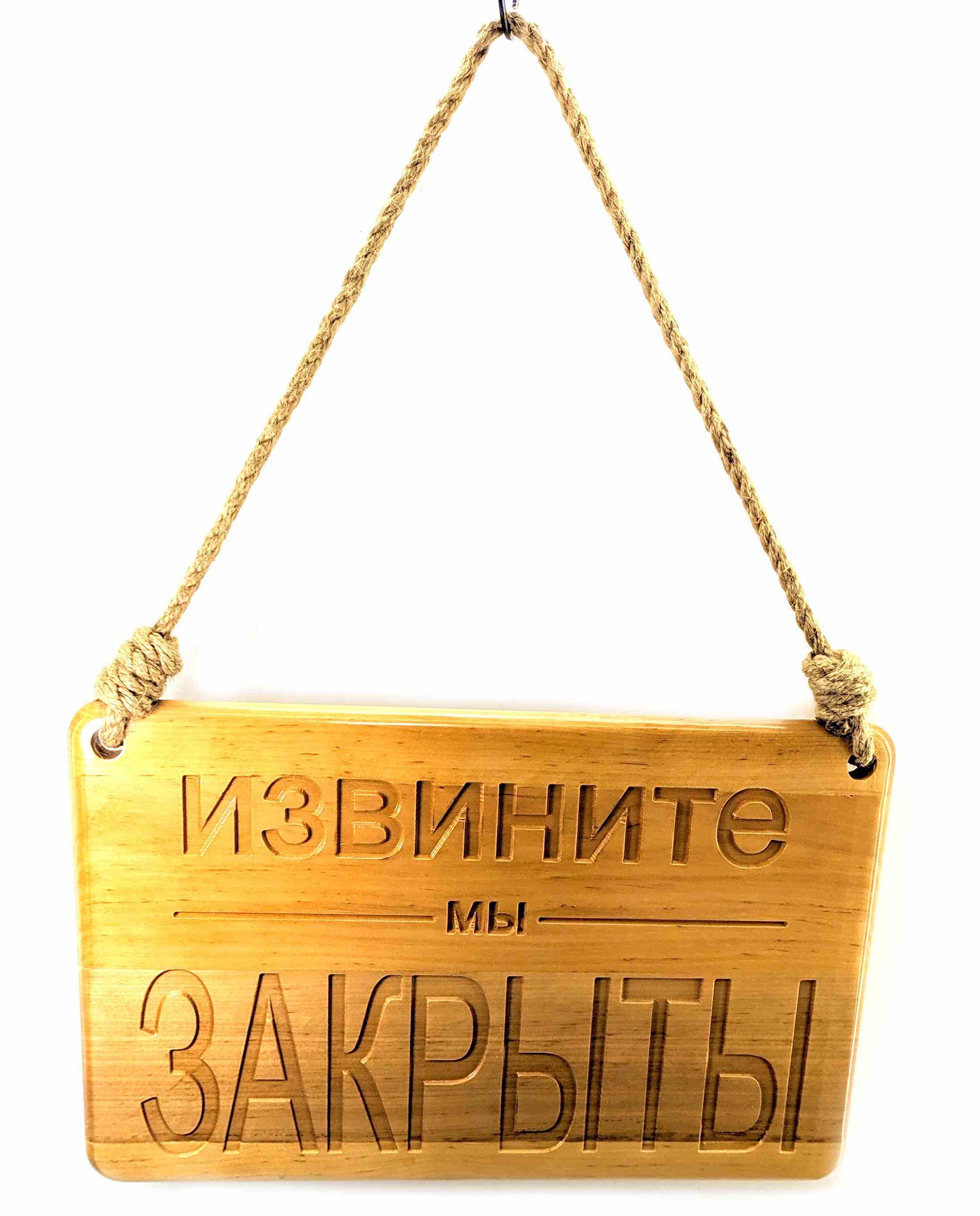 Табличка деревянная Открыто -Закрыто (40х25х2 см),резная, покрыта лаком,пеньковая веревка в компл