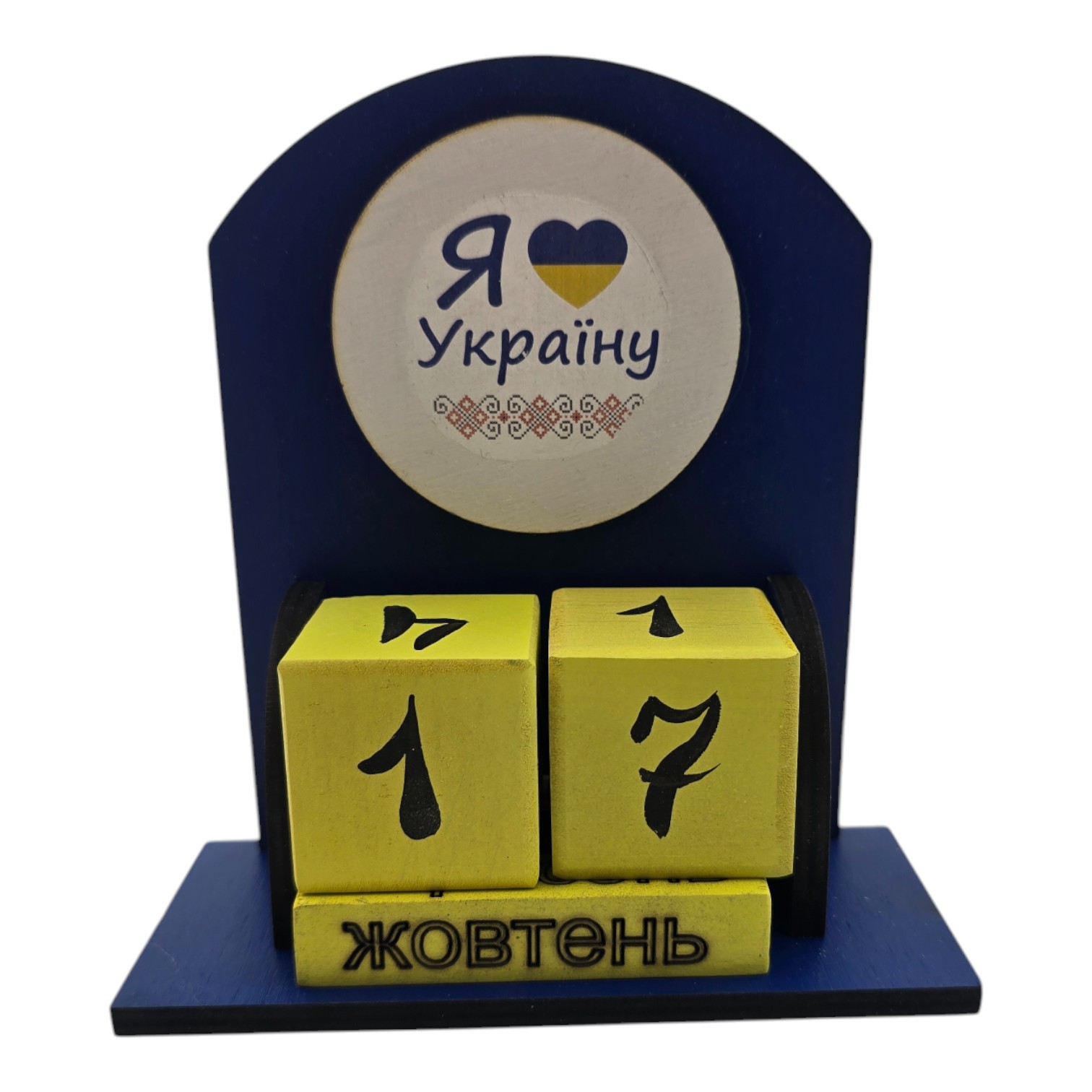 Вечный календарь Я люблю Украину (155х142х60 мм),с темным кантом расписано вручную.