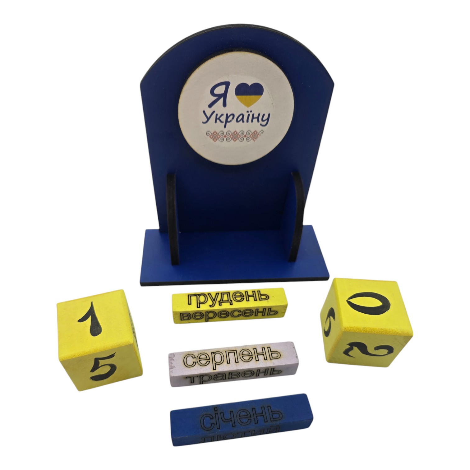 Описание Вечный календарь "Я люблю Украину " (155х142х60 мм),с темным кантом расписано вручную.