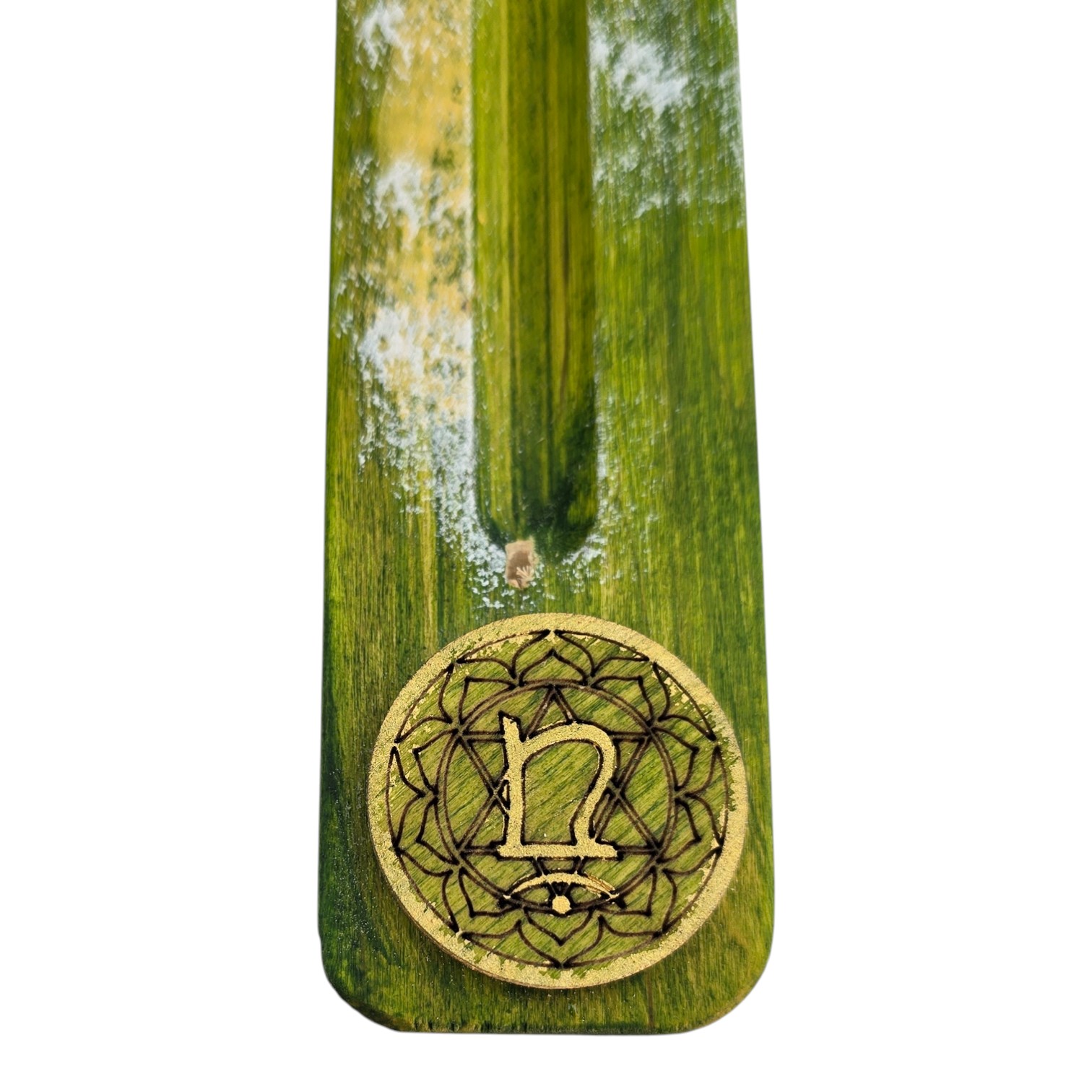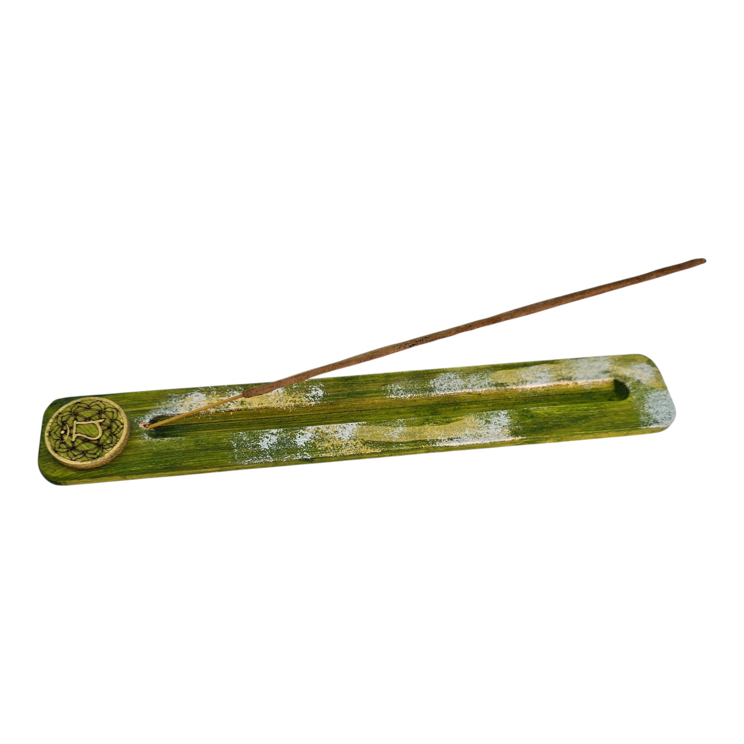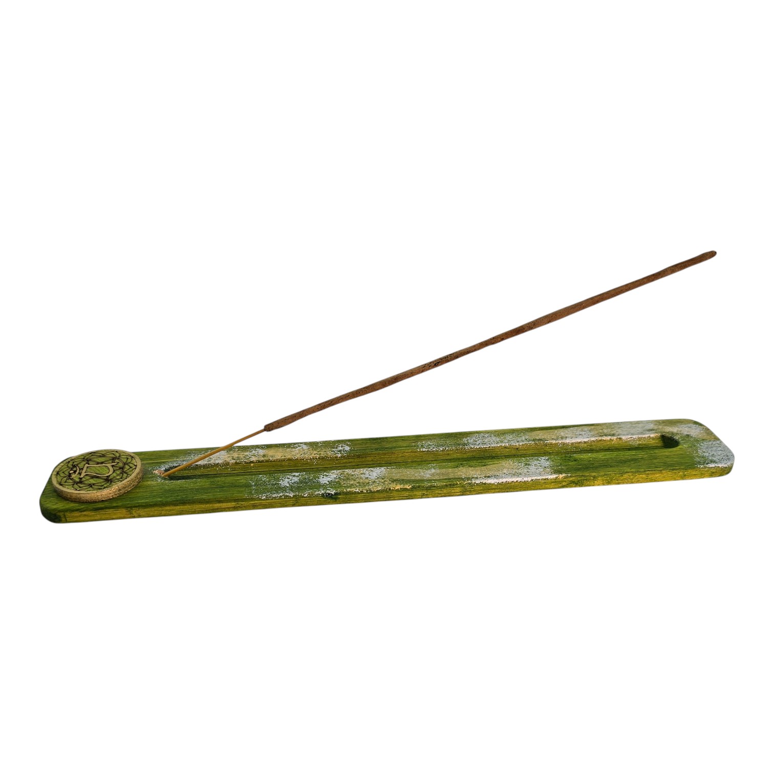 Подставка под благовония,зеленая Анахата (26х4х0,7 см), расписано вручную, массив дерева.