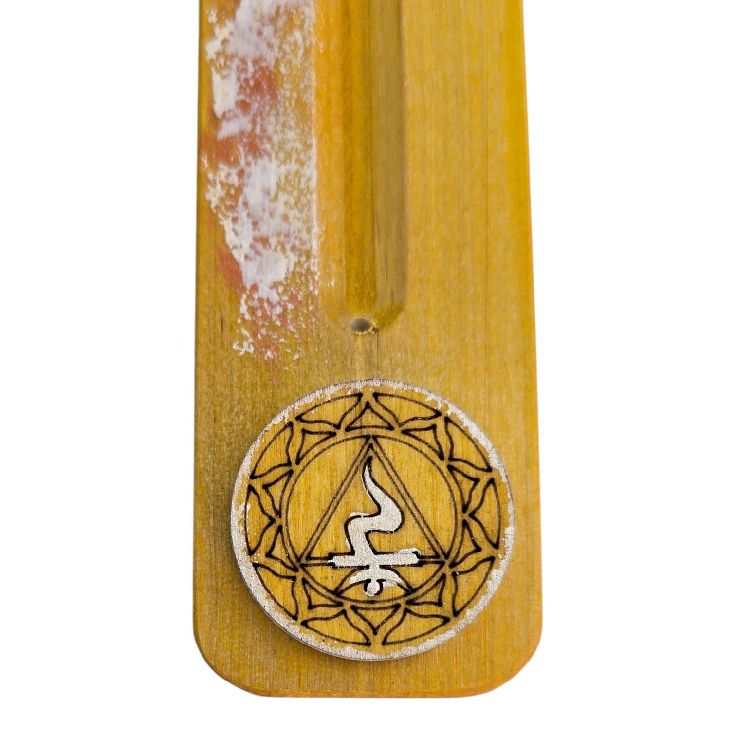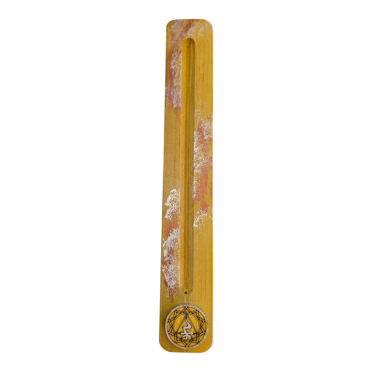 Подставка под благовония,желтая Манипура (26х4х0,7 см), расписано вручную, массив дерева.