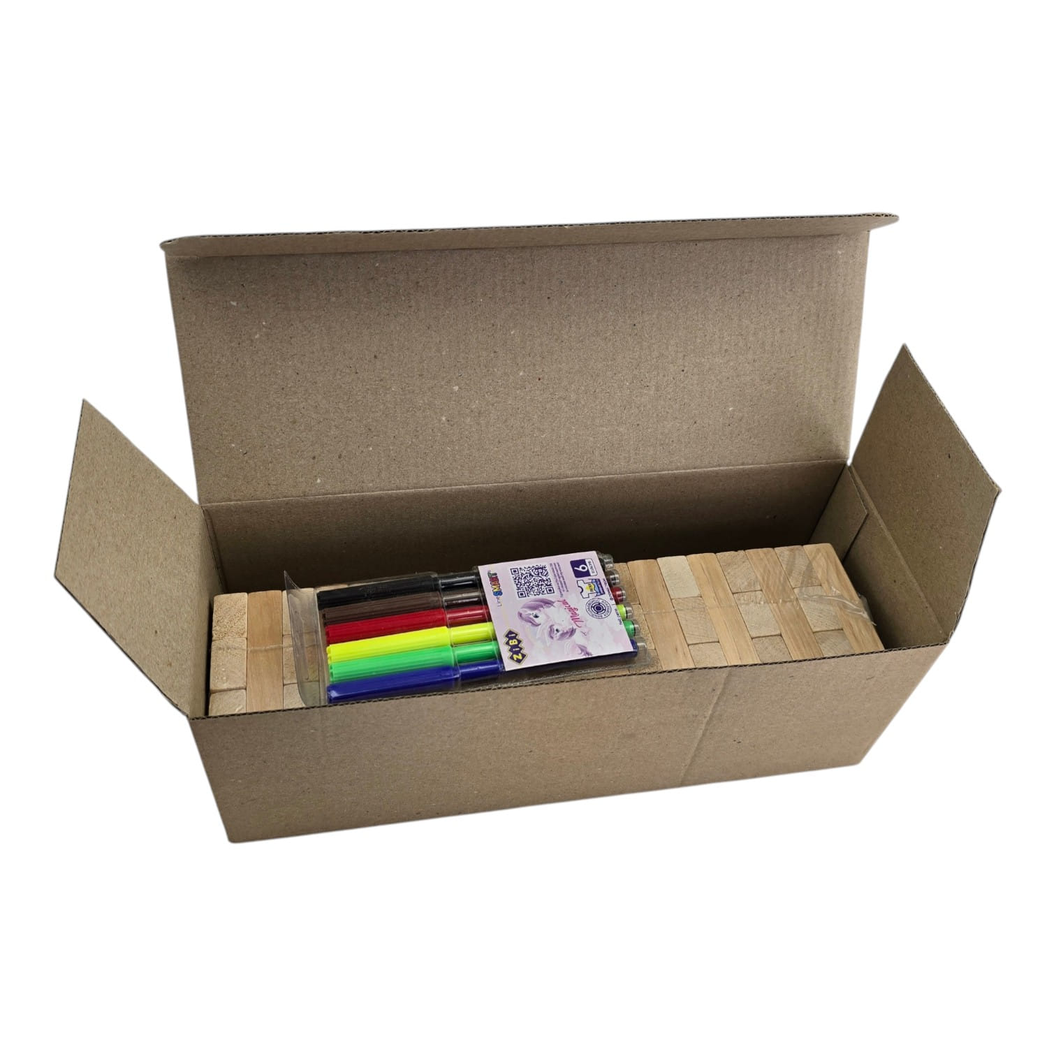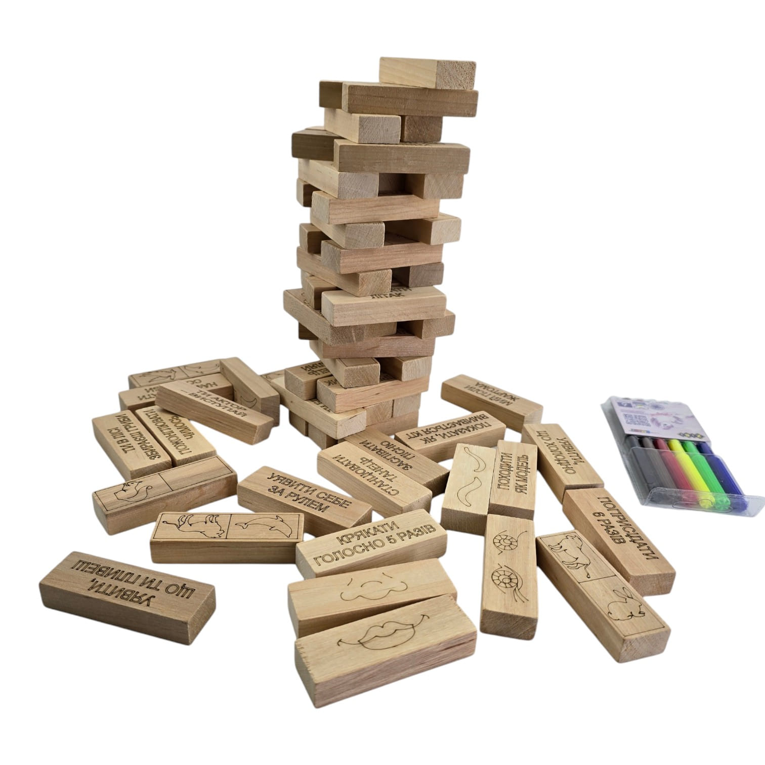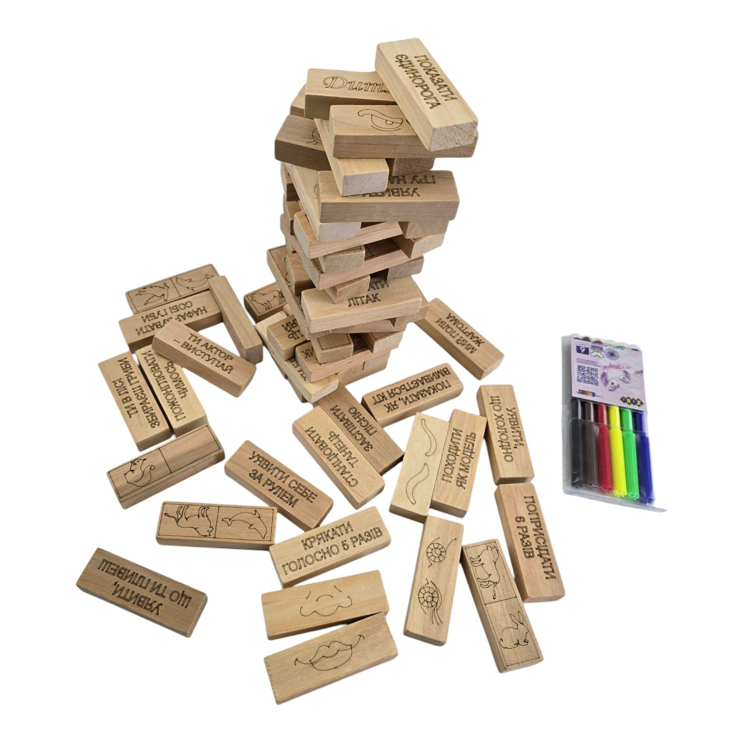 Игра настольная Дженга 4в1:Башня, фанты,эмоции,детское домино(60 брусков +фломастеры)(28,5х7х7 см)