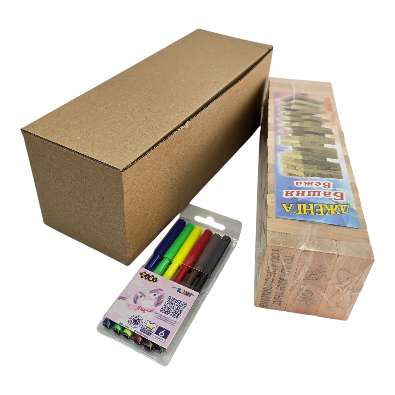 Это не просто классическая «Дженга» — это целый игровой центр в одной коробке из натурального дерева. Мы создали игру, которая не ограничивает ребенка правилами, а предлагает ему стать соавтором!
