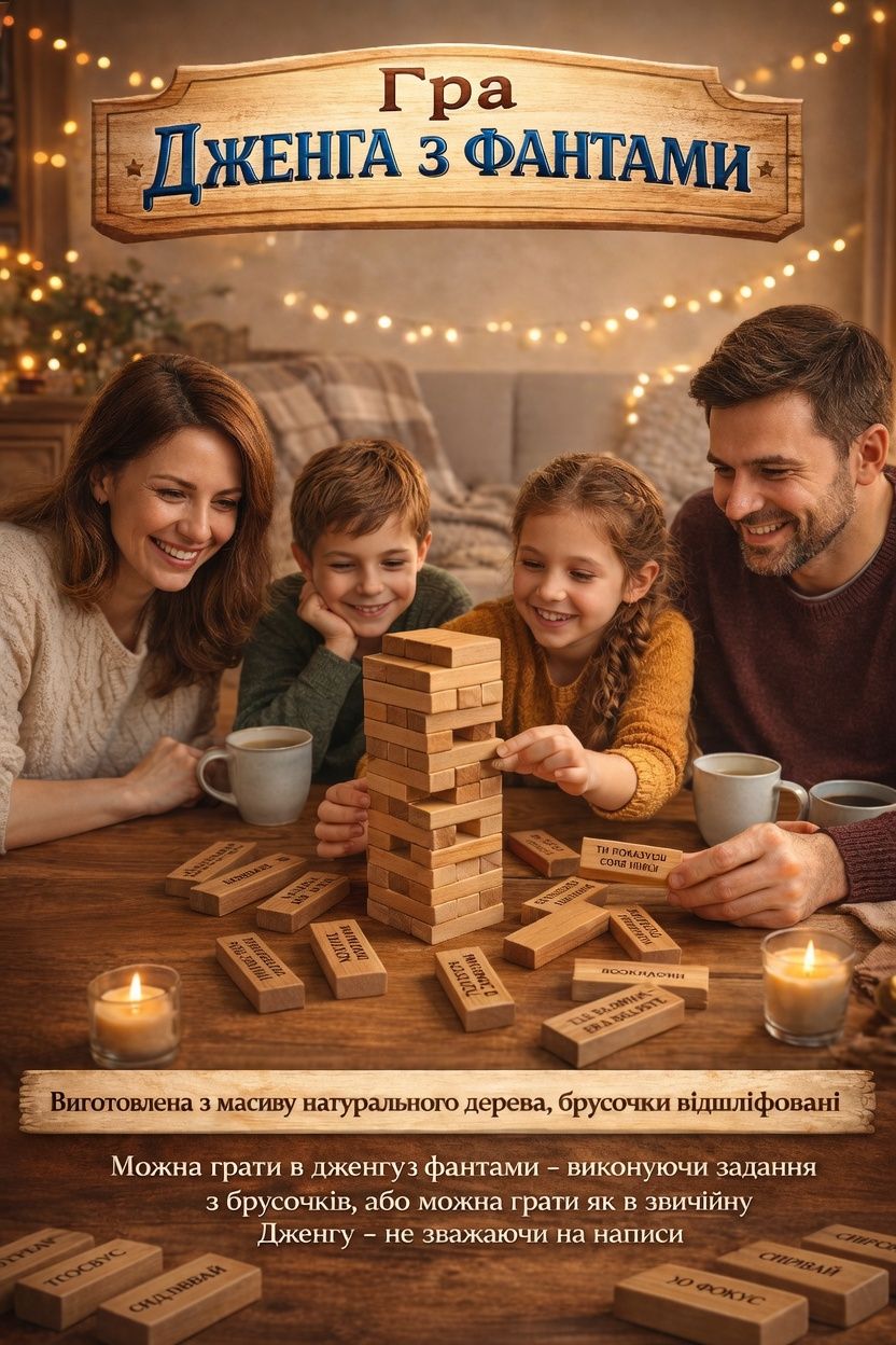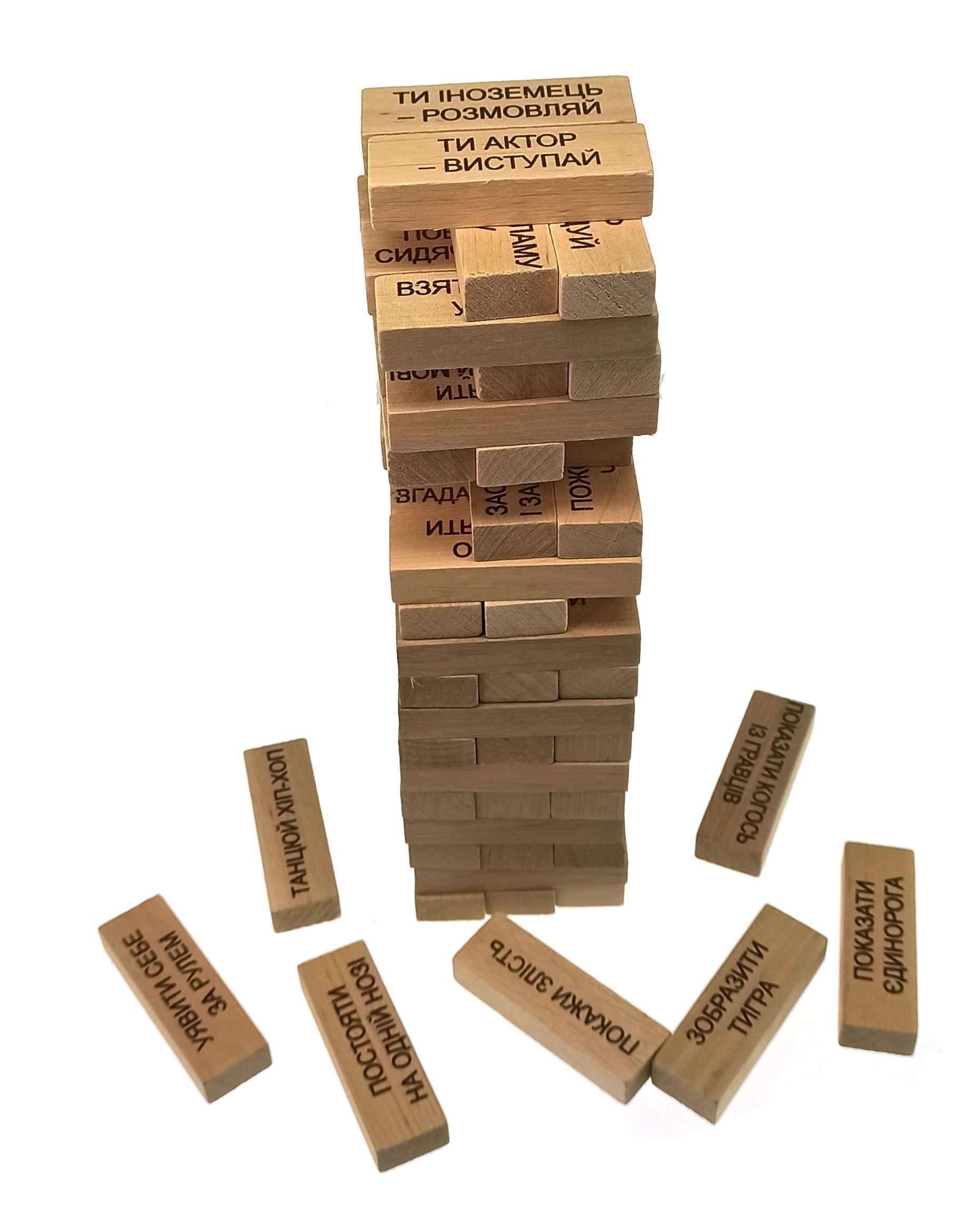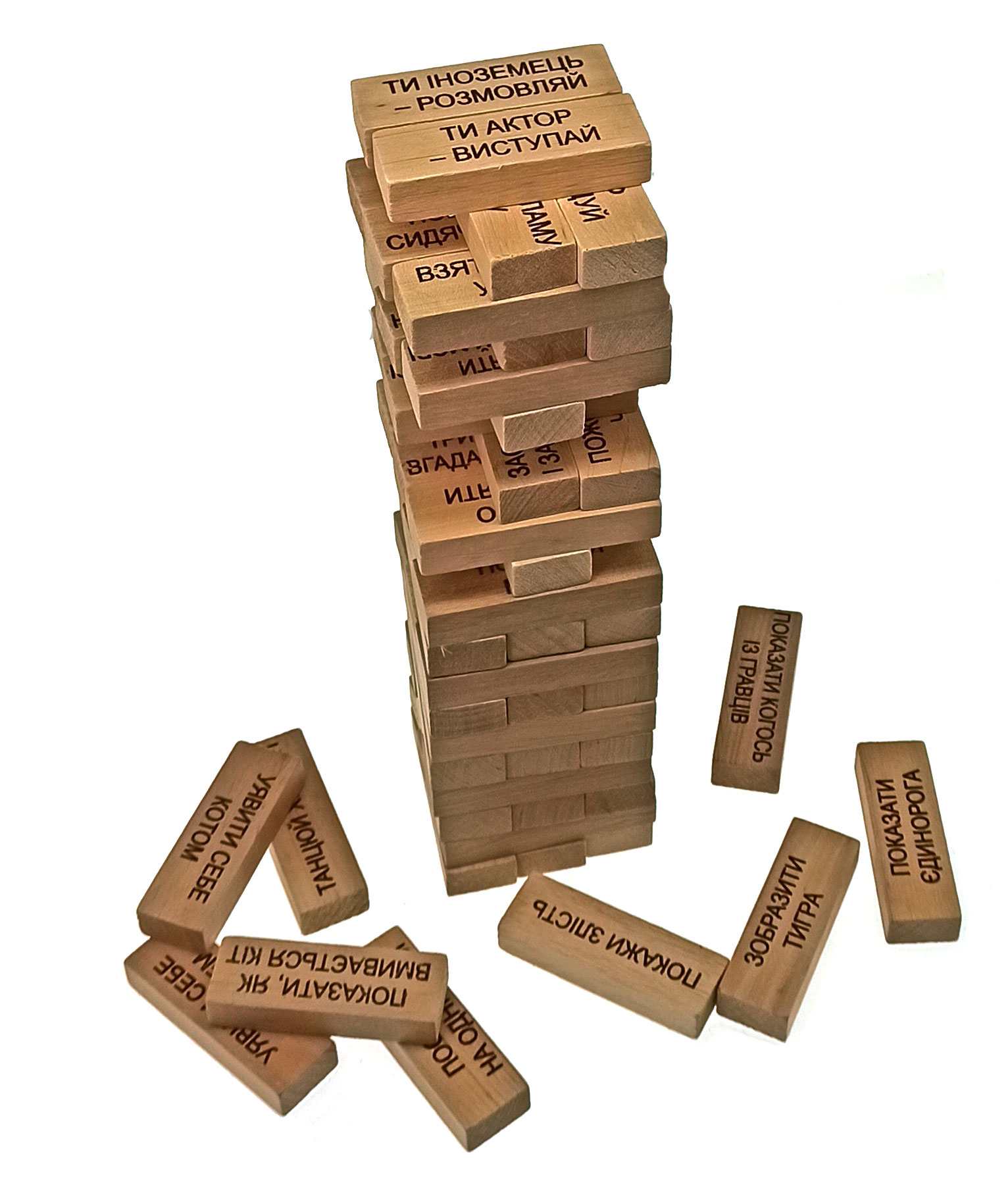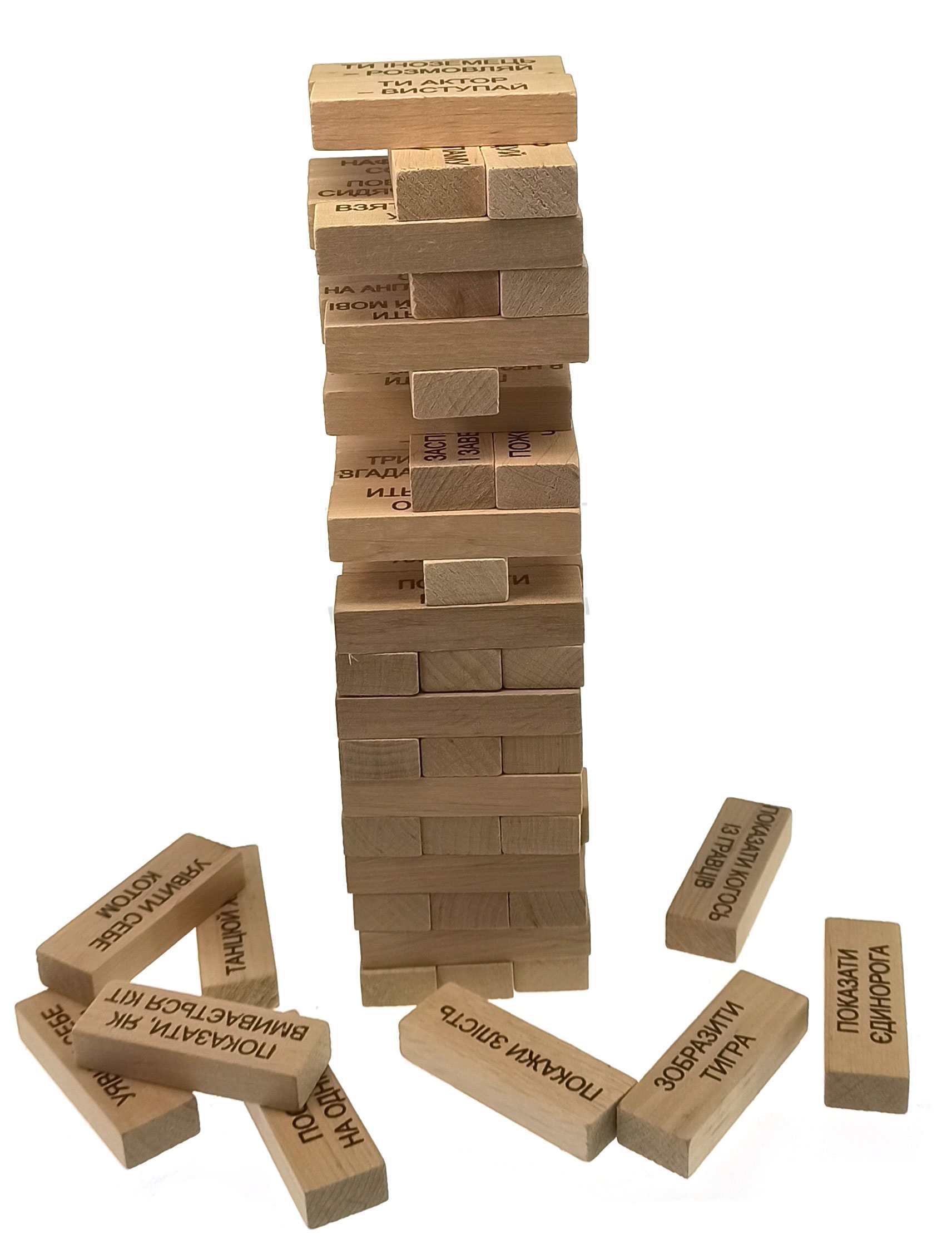 Игра настольная Дженга с фантами, на украинском языке (60 брусков)(28,5х7х7 см )массив дерева