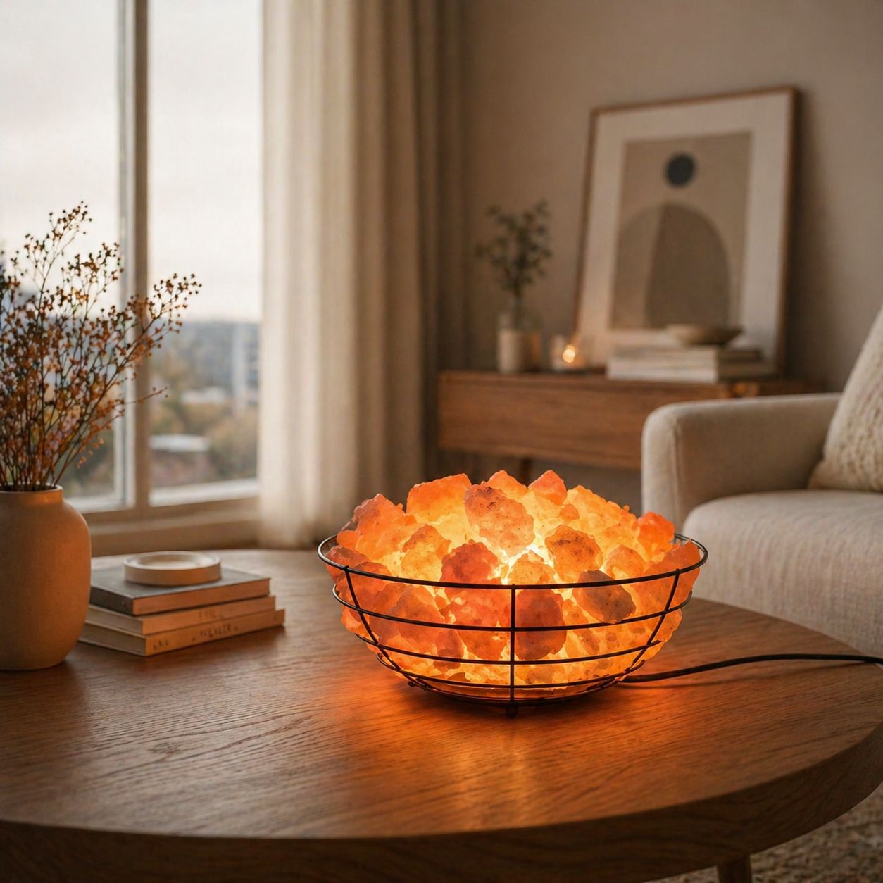 Соляная лампа из гималайской соли, Чаша огня (проволочная чаша) (26x12см).