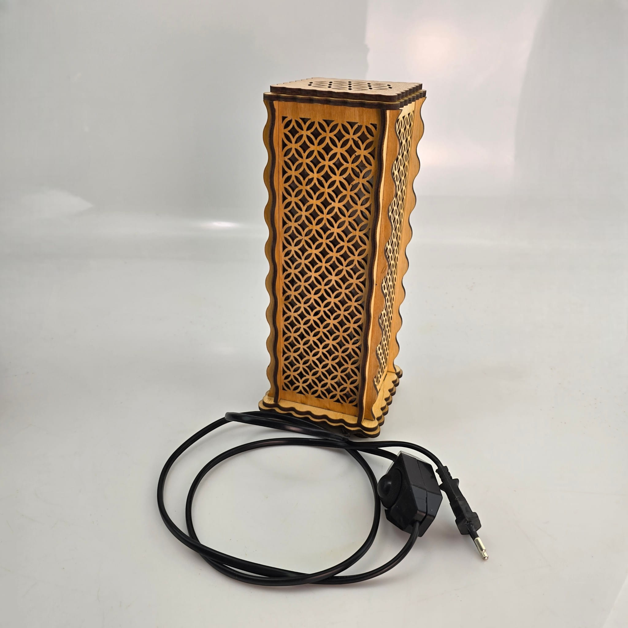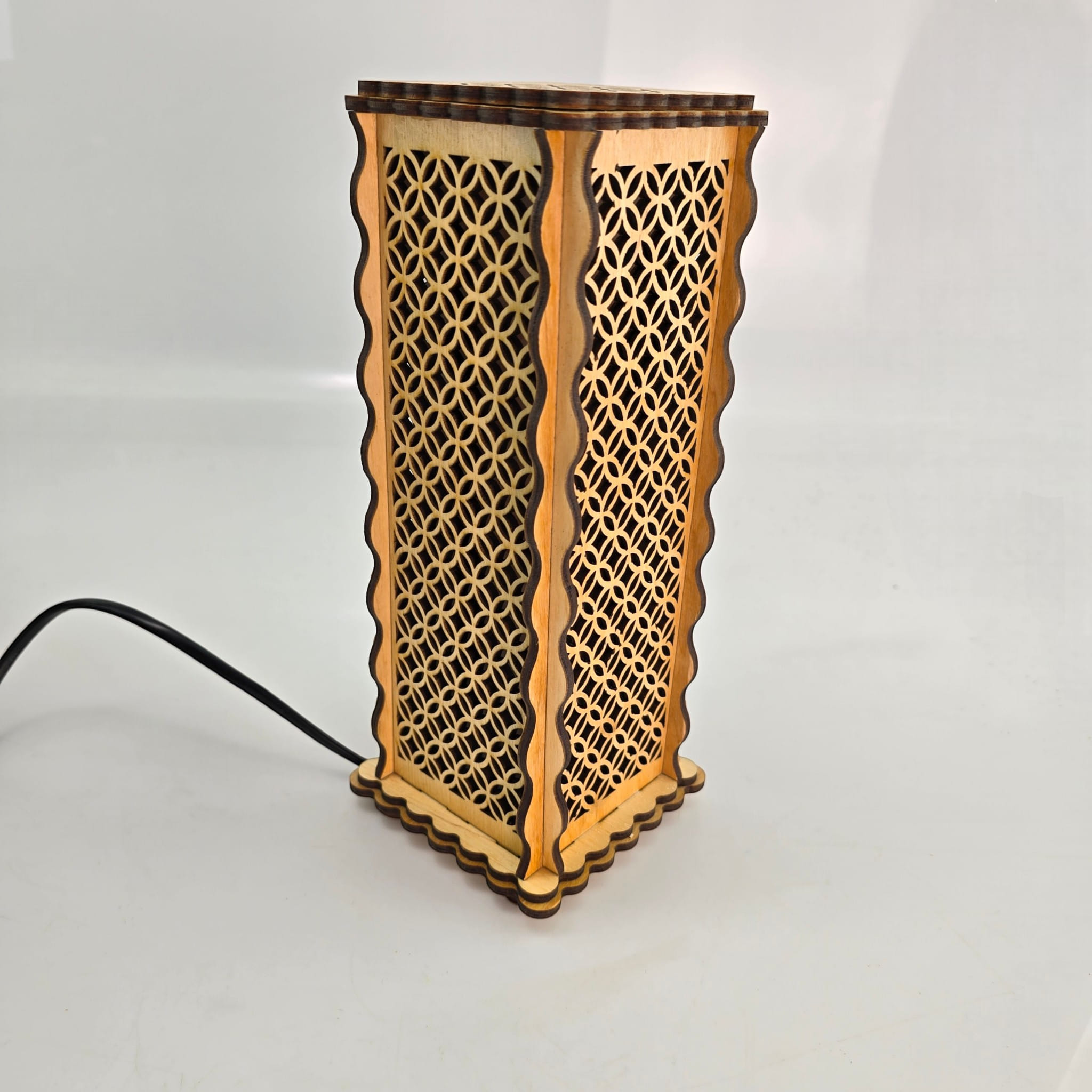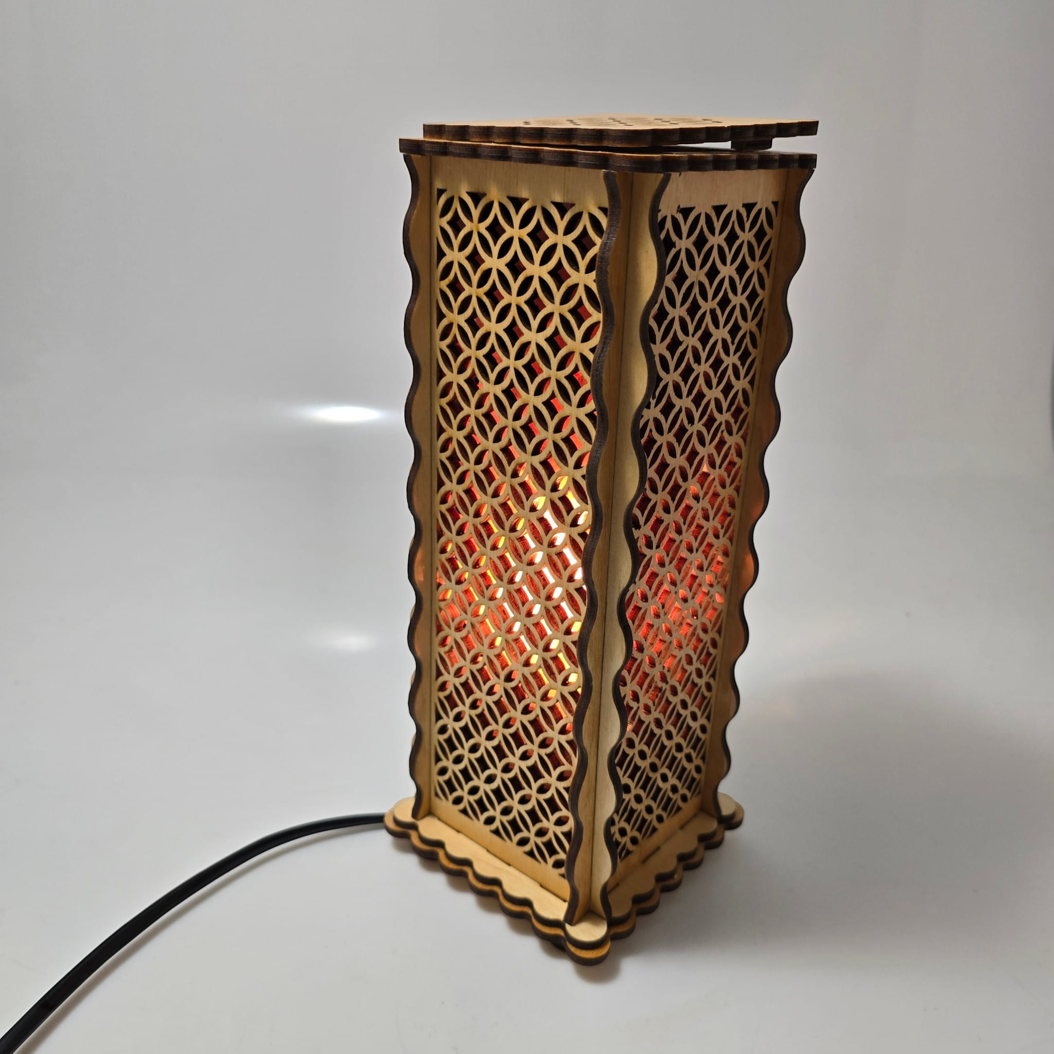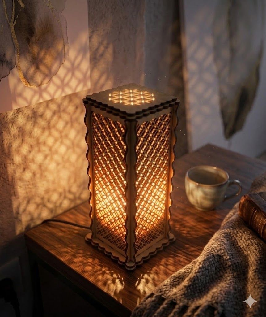 Сакральный дизайн: Узор «Цветок жизни» на верхней панели и изящная геометрическая резка на стенках создают магическую игру света и тени.