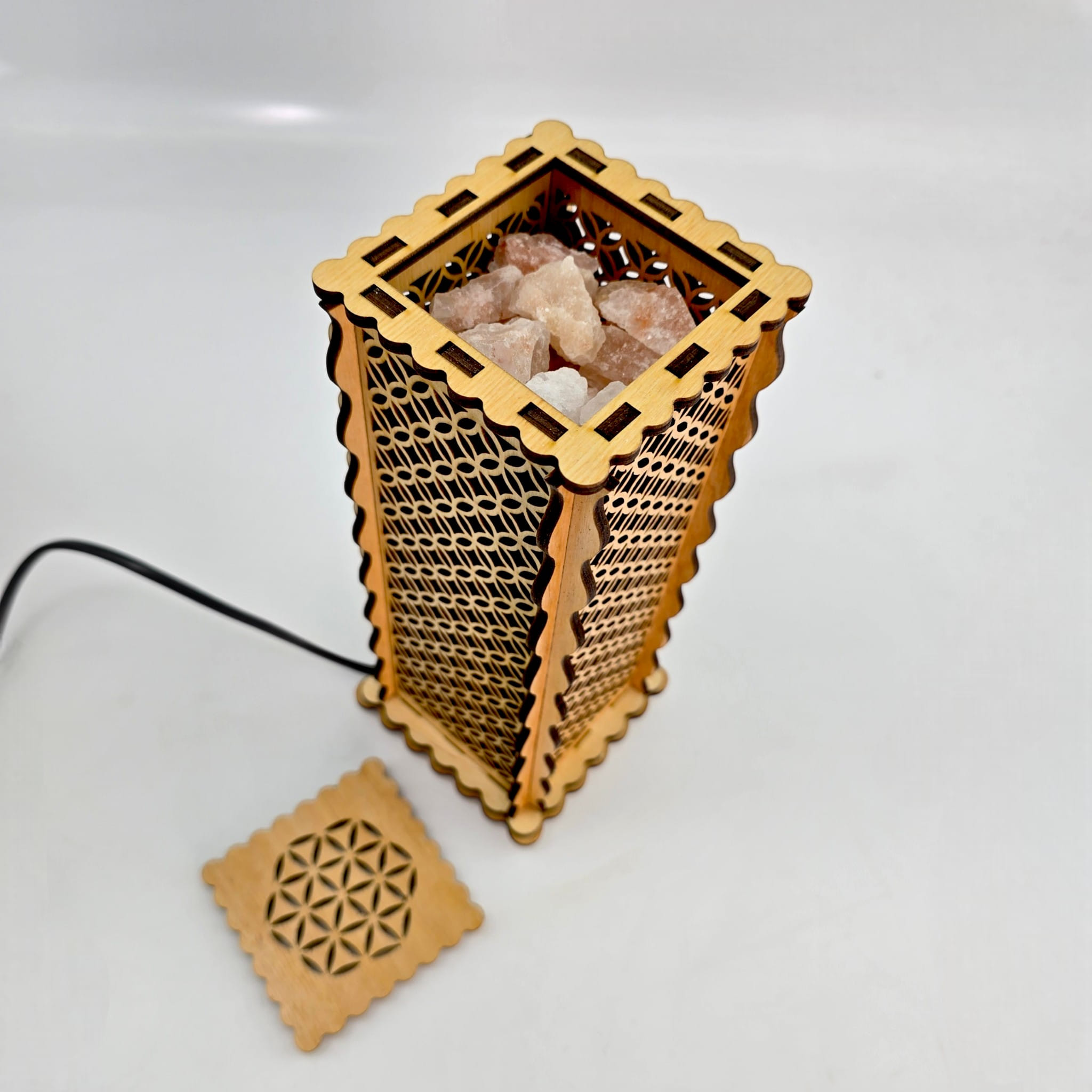 Этот уникальный светильник сочетает в себе сакральную геометрию «Цветка жизни», тепло натурального дерева и оздоравливающую силу гималайской соли. особенность этой модели — встроенный диммер (регулятор яркости) на сетевом шнуре.