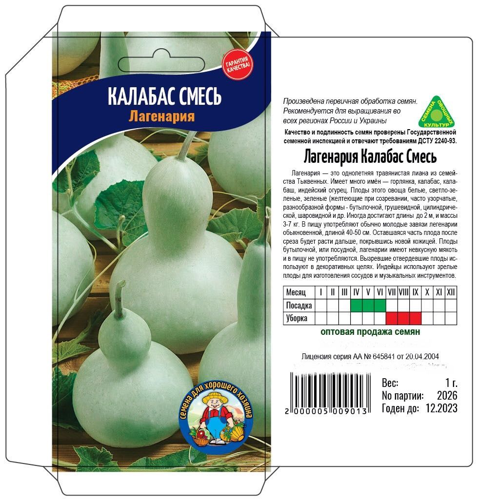 Лагенария- это однолетняя травянистая лиана из семейства тыквенных. Имеет много имён- горлянка, калабас, калабаш, индейский огурец. Плоды этого овща белые, светло-зелёные (желтеющие при созревании, часто узорчатые, разнообразной формы-бутылочной,грушевидной, цилиндрической, шаровидной и др) Достигает длинной до 2 м и массы 3-7 кг.
