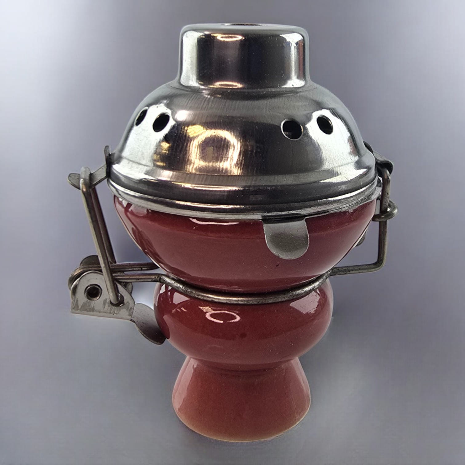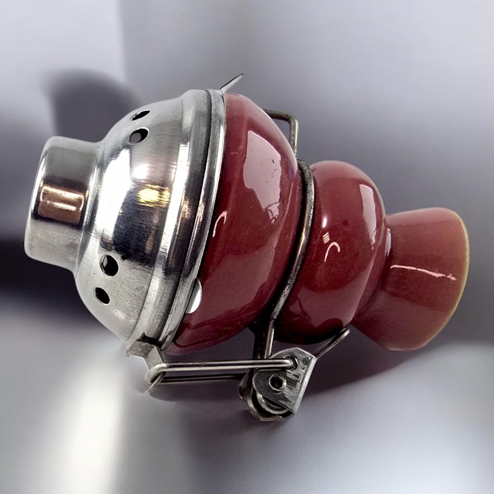 Чашка для кальяна керамическая с металлической крышкой коричневая (9х5,7 см)