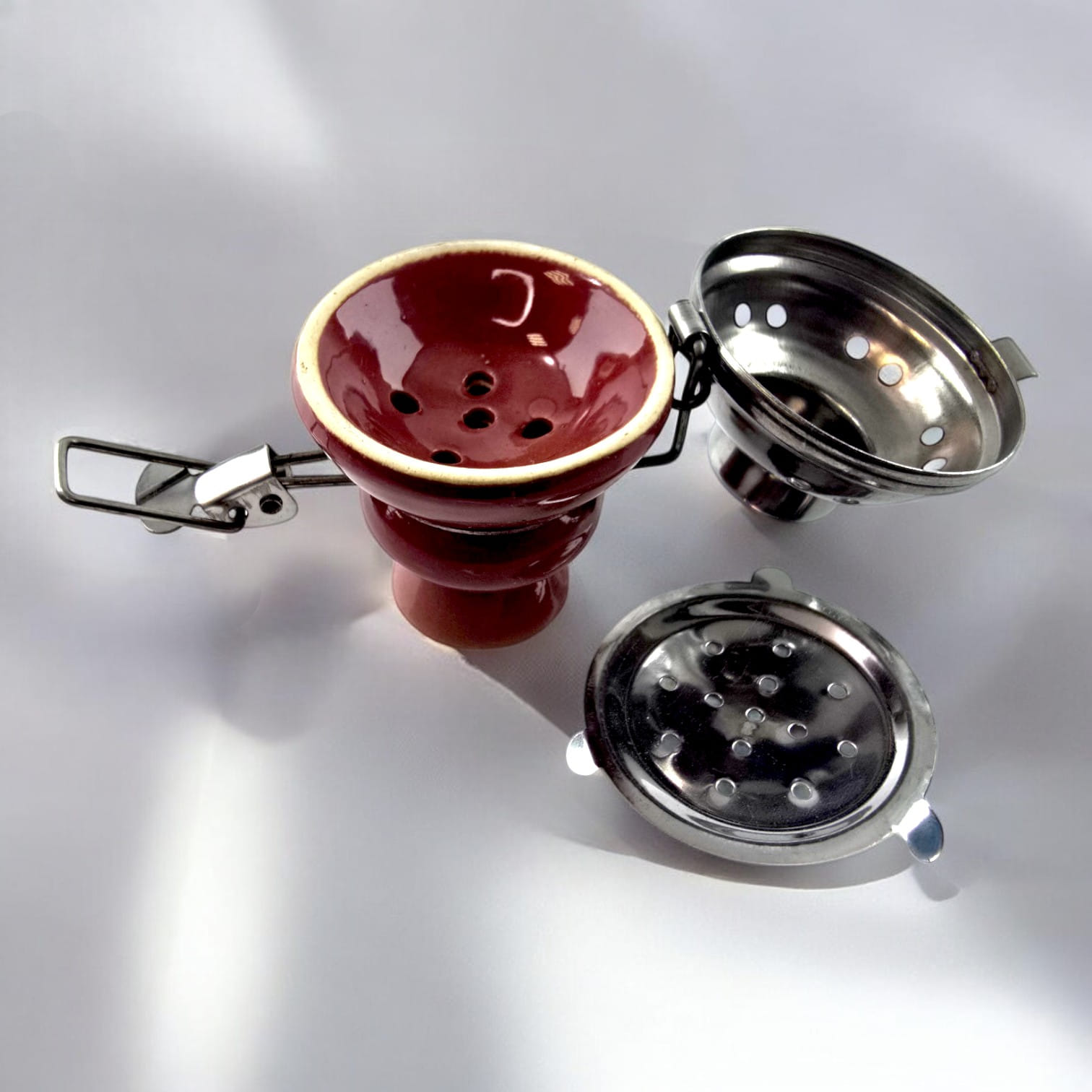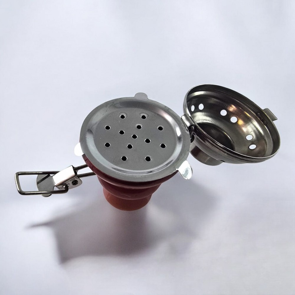 Крышка имеет удобную конструкцию, которая равномерно распределяет тепло, сохраняя стабильную температуру во время курения. Металлическая часть с отверстиями обеспечивает эффективную циркуляцию воздуха, что помогает углю лучше тлеть, обеспечивая приятный вкус дыма. Съемная вставка позволяет легко чистить крышку после использования. Керамическая основа добавляет крышке элегантный вид и делает её устойчивой.