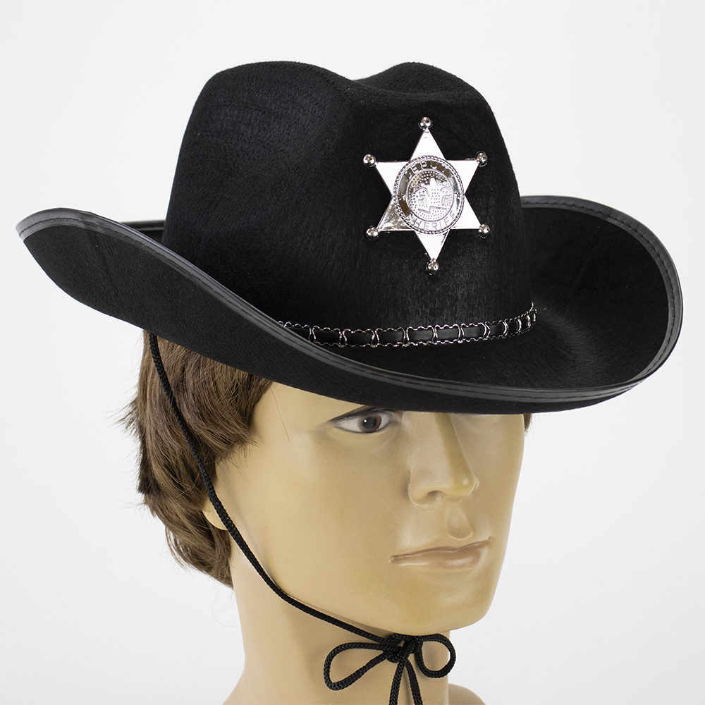 Шляпа Шерифа фетр – простой и незамысловатый способ создать карнавальный образ шерифа. Не важно, что вы оденете, на любой вечеринке, маскараде или карнавале вы в центре внимания. Шляпа Шерифа изготовлена из фетра черного цвета с о звездой шерифа на передней части шляпы. Купив Шляпу Шерифа фетр в интернет-магазине Карнавал Приколов Вы получаете не только качественный товар, но и 100 % позитивных впечатлений от приобретения. Среди нашего широкого ассортимента товаров, Вы найдете множество необычных и оригинальных подарков для различных мероприятий. Прикольные шляпы и карнавальные шапки принесут изюминку в образ вашего персонажа на тематической вечеринке, карнавале или маскараде. Многообразие форм, фасонов и моделей головных уборов, безусловно, облегчит Ваш поиск оригинального образа.
