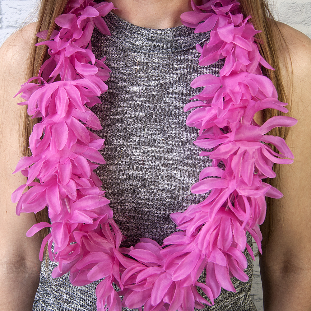 Без гавайских гирлянд из цветов веселая тематическая вечеринка в гавайском стиле не обойдется! Гавайские леи Гибискус (малиновые) надевают на дорогих и высокочтимых гостей, но на маскараде пышные бусы только подчеркнут образ изящной островитянки. Плавные движения и завораживающие танцы в гавайских ритмах запомнятся гостям благодаря шикарным гирляндам на шее. Вечеринка перестает быть серой и скучной, когда в ее русло вливаются ярко - красочные Гавайи! Чтобы гости почувствовали себя в потоке праздника, интернет - магазин Карнавал Приколов рекомендует купить каждому гостю гавайский атрибут в качестве оригинального подарка – тогда никто не забудет о сказочно проведенном времени!
