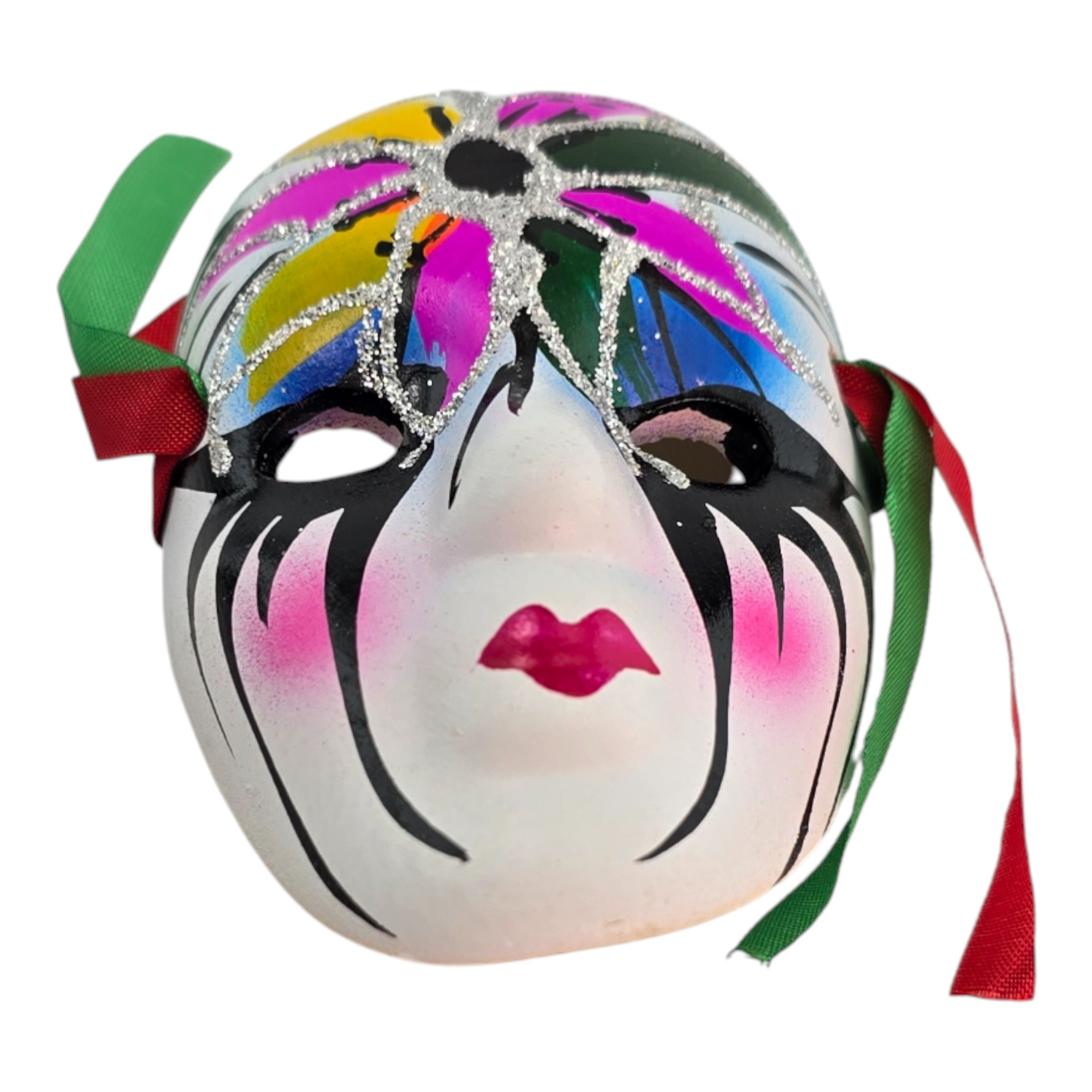 Миниатюрная венецианская маска для декора и тематических событий. Такие маски называют “венецианскими”, потому что именно в Венеции сложилась традиция карнавальных маскарадов: во время праздников маска скрывала лицо, помогала примерить новый образ и создавала атмосферу карнавала, театра и загадочности.