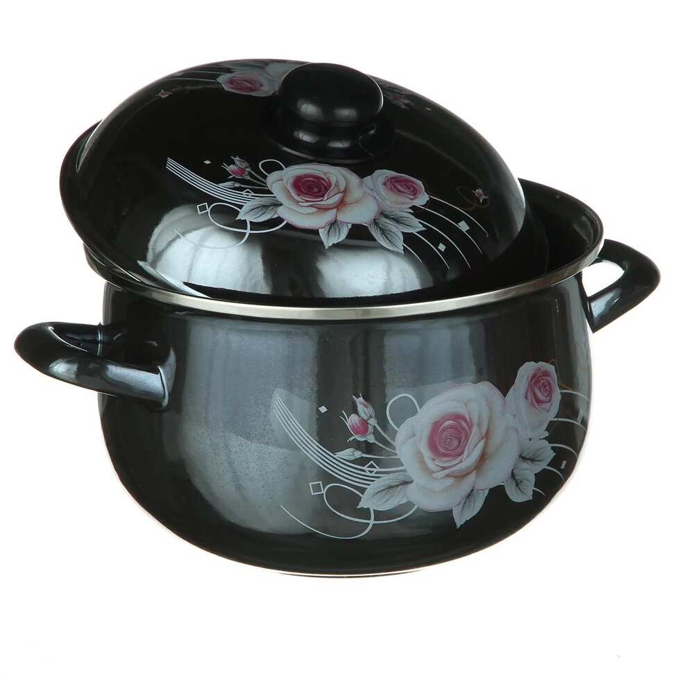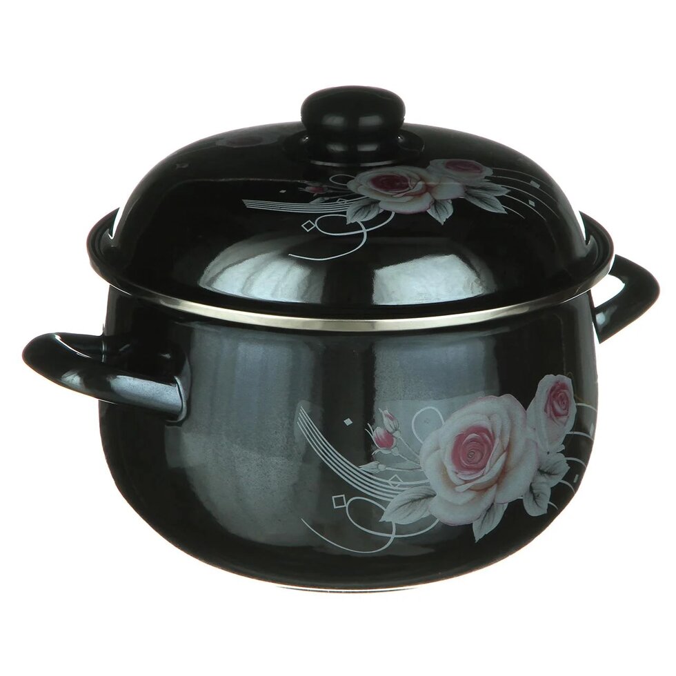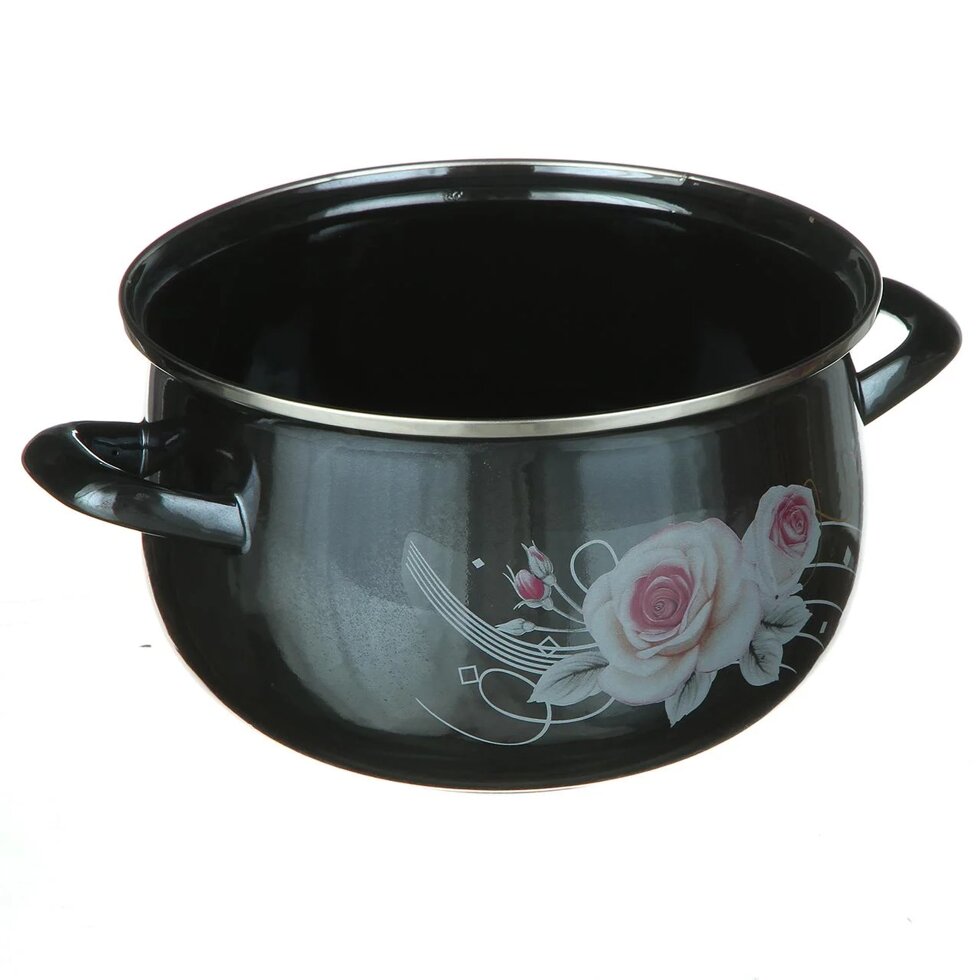 Эмалированная кастрюля 6,5 л. 24 см Helios с цветочной композицией 1348