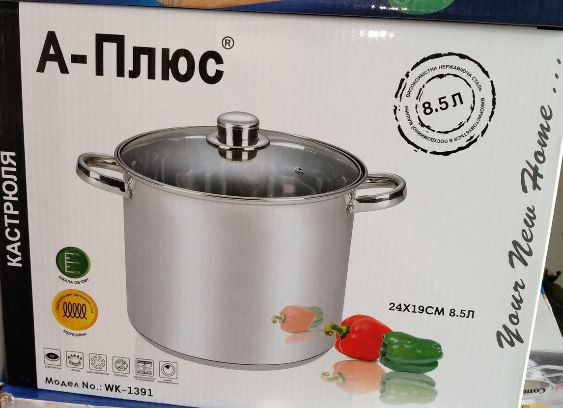 Кастрюля со стеклянной крышкой A-PLUS WK-1391 (8.5 л. 24 см)