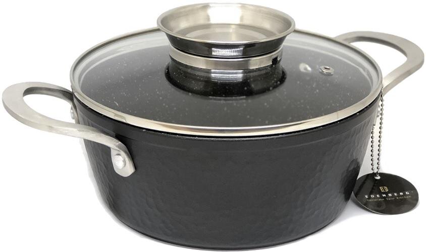 КАСТРЮЛЯ-КАЗАН 7,2 Л МРАМОРНОЕ ПОКРЫТИЕ EDENBERG EB-3966 СО СТЕКЛЯННОЙ КРЫШКОЙ