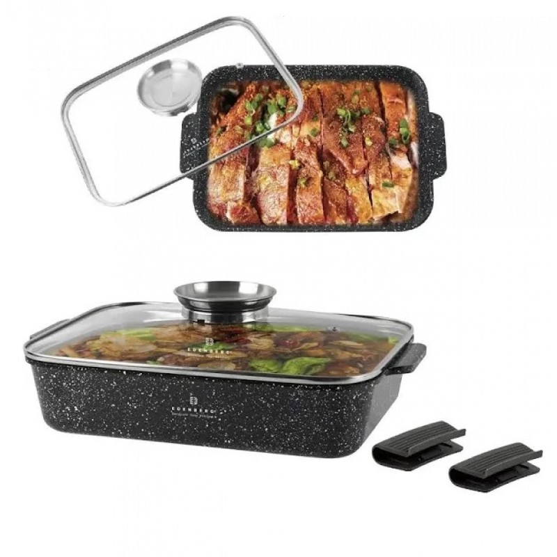 Жаровня с крышкой с мраморным покрытием Edenberg EB-12123 – это идеальный аксессуар для приготовления различных блюд, который сочетает в себе высокое качество, практичность и стильный дизайн. Благодаря мраморному покрытию, она обладает отличными антипригарными свойствами, что делает процесс готовки комфортным и легким, а также упрощает уход за посудой. Эта жаровня Edenberg EB-12123 идеально подходит для приготовления тушеных блюд, жарки, запеканок и других кулинарных экспериментов. Характеристики : Объем 4,7 литра. Размеры 32x23x7,5 см. Материал - Литой алюминий. Покрытие - Мраморное антипригарное. Тип дна - Турбо индукционное (подходит для всех типов плит, включая индукционные). Ручки - Мягкие силиконовые. Крышка - жаропрочное стело