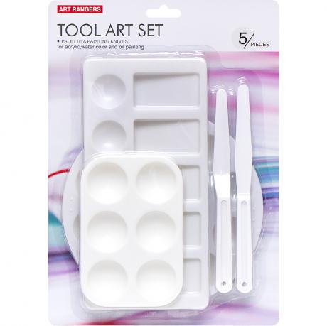 Набір для письма маслом 02В. Пластмасова палітра з мастихінами для розведення фарб. Окрім поглиблень палітра має досить місця для змішування фарб. У наборі 3 палітри і 2 мастихіни. Колір білий.