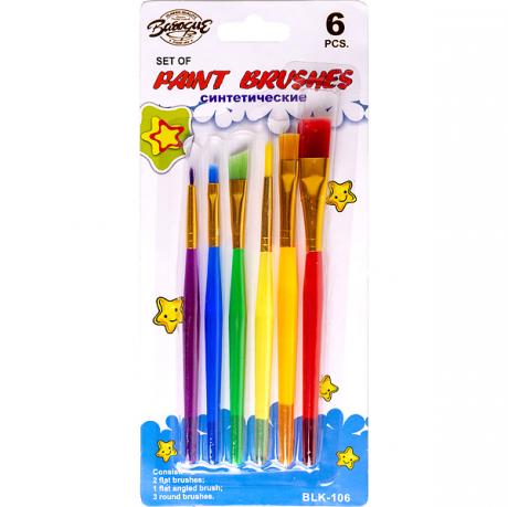 Набір художніх пензликів включає 6 пензликів із синтетичним нейлоновим ворсом: 4 плоскі та 2 круглі пензлики різного розміру. Ці пензлі підходять для роботи з аквареллю, гуашшю, акрилом і олійними фарбами, забезпечуючи рівномірне нанесення та плавні мазки. Гнучкий і міцний нейлоновий ворс зберігає свою форму навіть при інтенсивному використанні, а пластикові ручки роблять процес малювання комфортним. Набір ідеально підходить для художників, студентів, школярів та всіх, хто любить творчість.