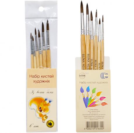 Набір художніх кистей з ворсу білки. Використовується при малюванні. Підходить для малювання аквареллю, гуашшю, акрилом. Розміри 1, 2, 3, 4, 5, 6.