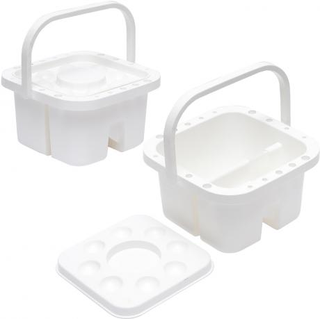 Склянка пластикова могофункціональна двосекційна для малювання з палітрою. Розмір 16,5*16,5*9,5см