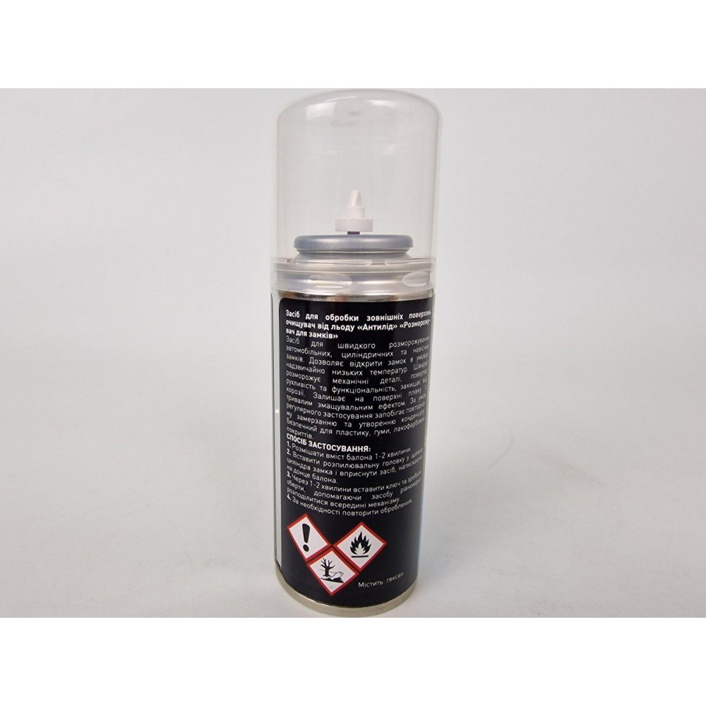 Средство для быстрой разморозки автомобильных, цилиндрических и навесных замков. Позволяет открыть замок в условиях очень низких температур. Быстро размораживает механические детали, вращает подвижность и функциональность, защищает от коррозии. Оставляет на поверхности пленку с длительным смазывающим эффектом. При регулярном применении предотвращает повторное замерзание и образование конденсата. Безопасный для пластика, резины, лакокрасочных покрытий.