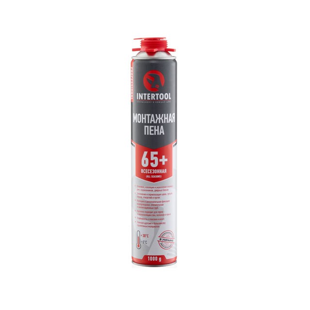 Пена монтажная профессиональная, всесезонная, 750мл/1000г. 65л.+, под пистолет INTERTOOL FS-1010