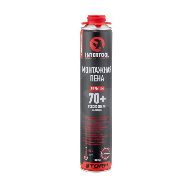 Пена монтажная профессиональная, всесезонная, 750мл/1000г. 70л.+., под пистолет STORM INTERTOOL FS-1000