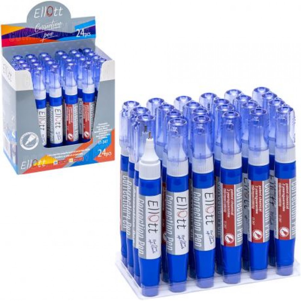 Коректор ручка з металевим наконечником. Наноситься на будь-яку паперову поверхню. Об'єм: 7 мл. В упаковці 24 штуки.