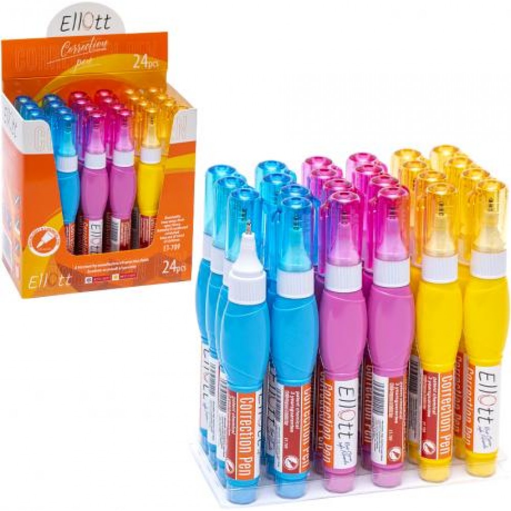 Коректор ручка з металевим наконечником. Наноситься на будь-яку паперову поверхню. об'єм: 7 мл. В упаковці 24 штуки.
