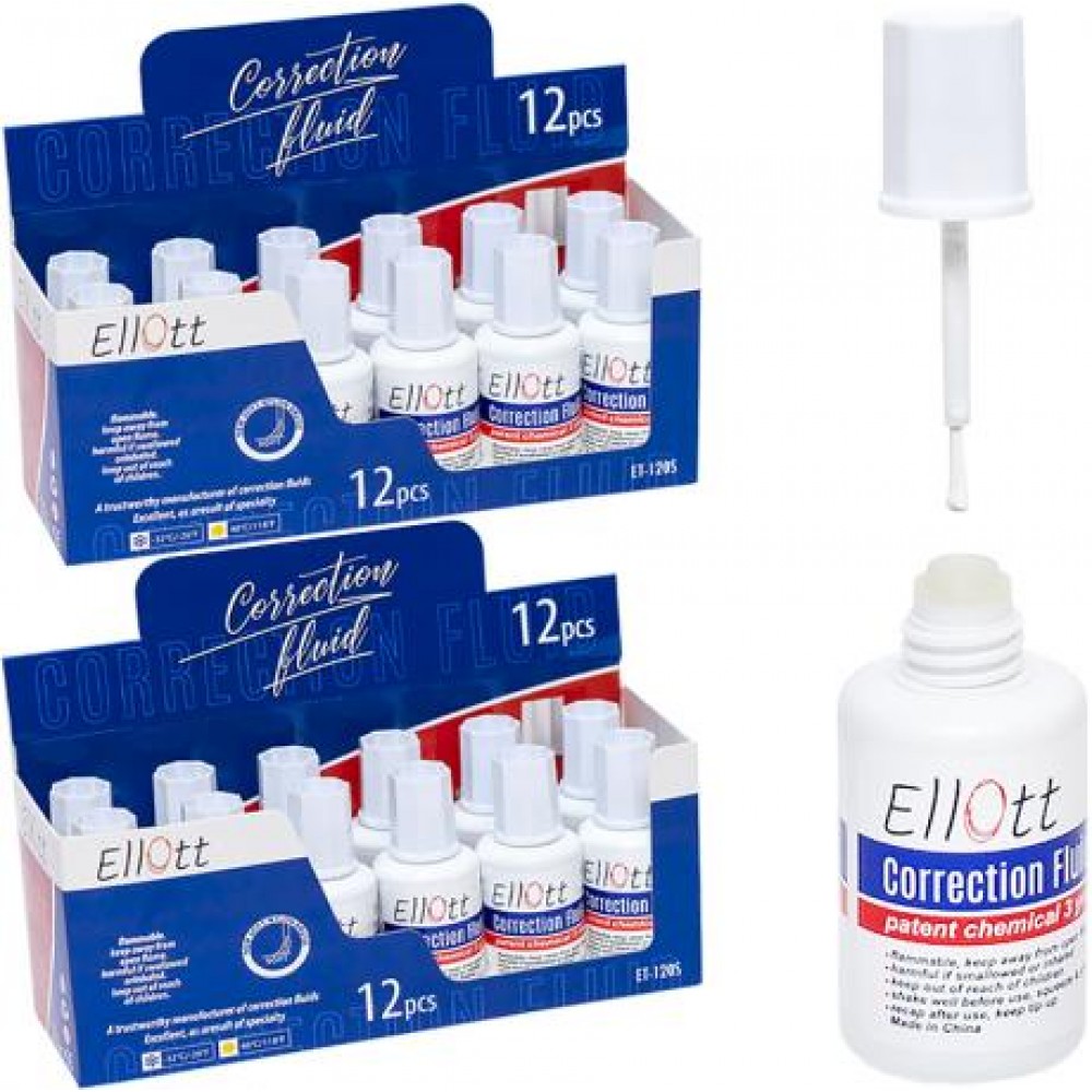 Коректор з пензликом. Наноситься на будь-яку паперову поверхню. Об'єм 20мл. В упаковці 12 штуки.