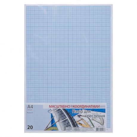 Папір масштабно-координатний «міліметрівка». Папір використовується для виконання креслярсько-графічних робіт, які вимагають дуже високої точності. Міліметрівка використовується часто на заводах для запису свідчень роботи автоматів, машин, верстатів. Саме ділення допомагають зробити якісні висновки про роботу. Фотмата: А4. 20 аркушів. Упаковано в поліетиленовий пакет.