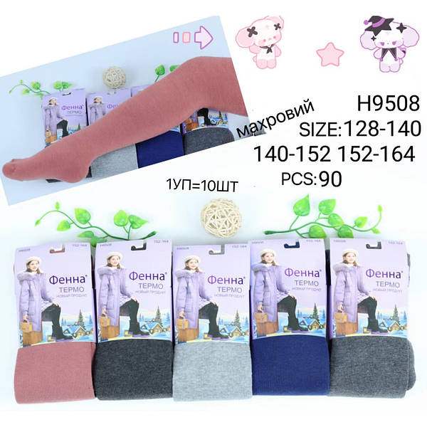 Колготки дитячі підліткові однотонні, теплі всередині на махрі.Фірми Фенна. Розміри: 128-140, 140-152, 152-164.