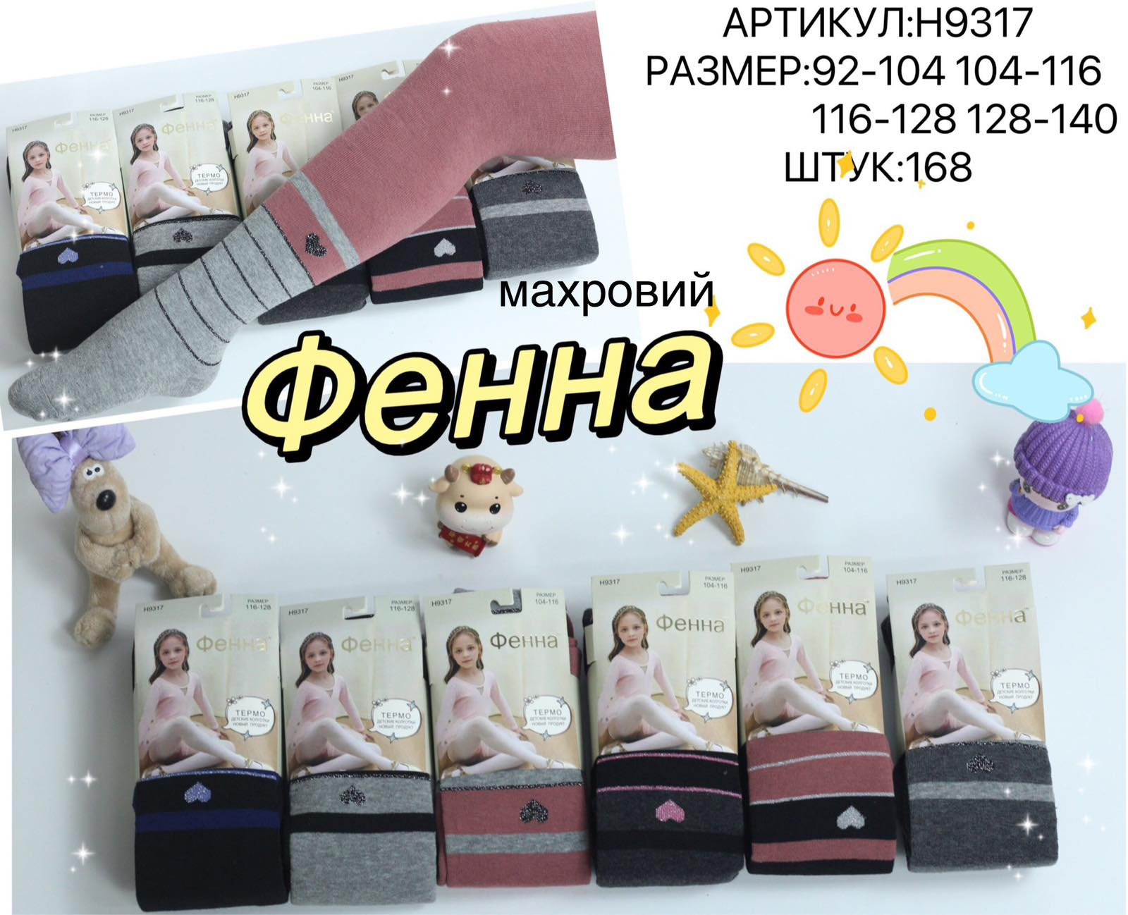 Колготки дитячі підліткові однотонні, теплі всередині на махрі.Фірми Фенна. Розміри: 128-140, 140-152, 152-164.