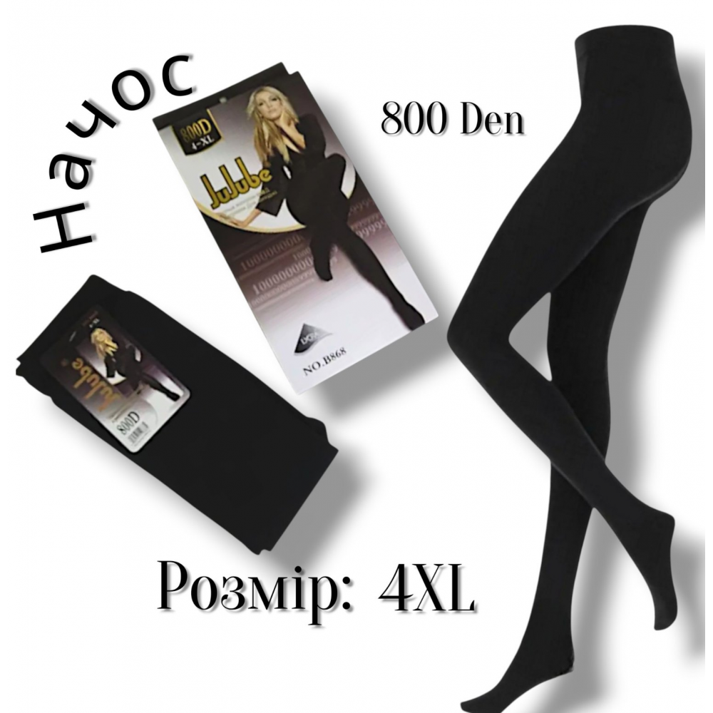 Колготки жіночі 800 Den. Утеплені ,всередині з начосом..Фірми JuJube. Колір чорний. Розмір 4XL (42-48)