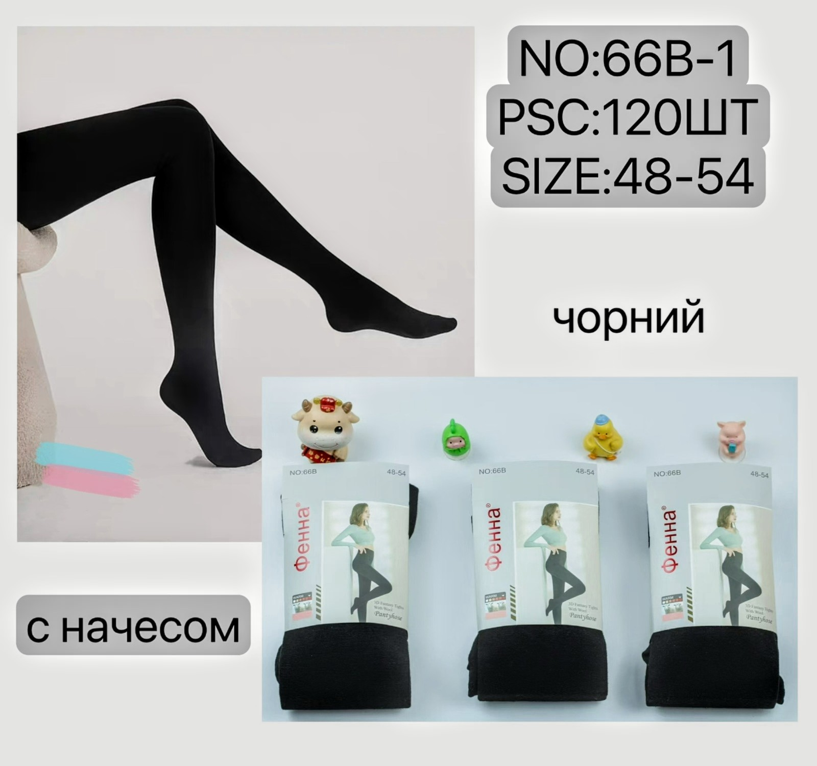 Жіночі кашемірові колготки з начосом. Фірми Фенна. Мають пам'ятку. Колір чорний. Розмір 48-54.