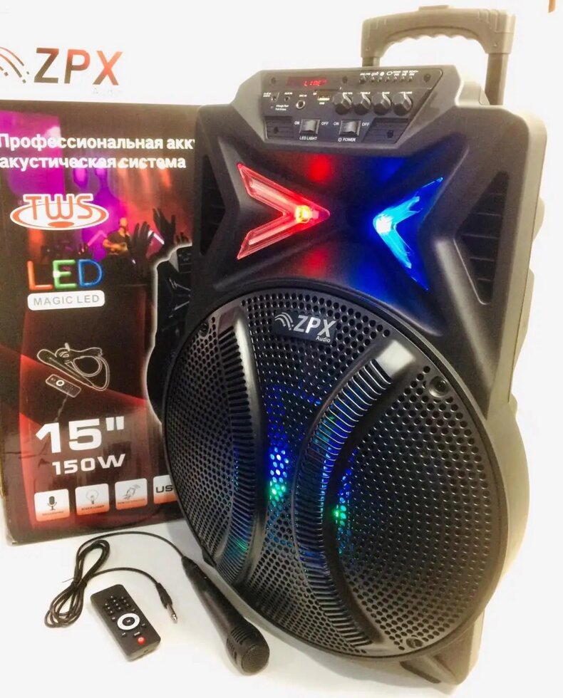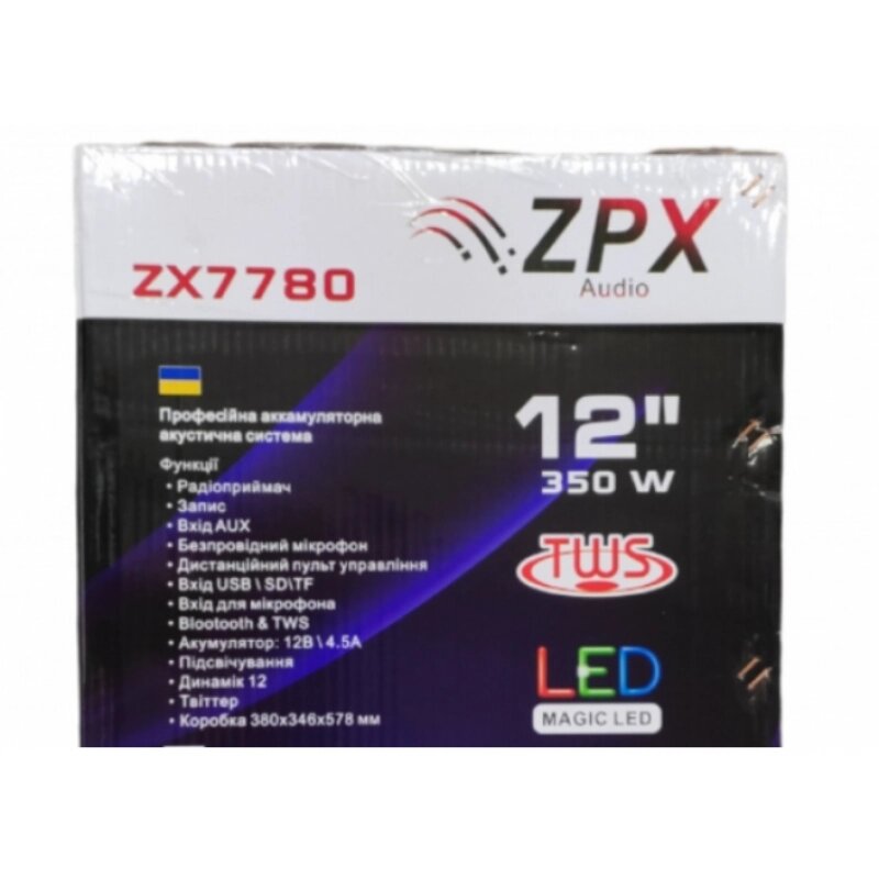 Портативная акустическая система ZX-7780 с беспроводном микрофоном, 12" 350W комбик